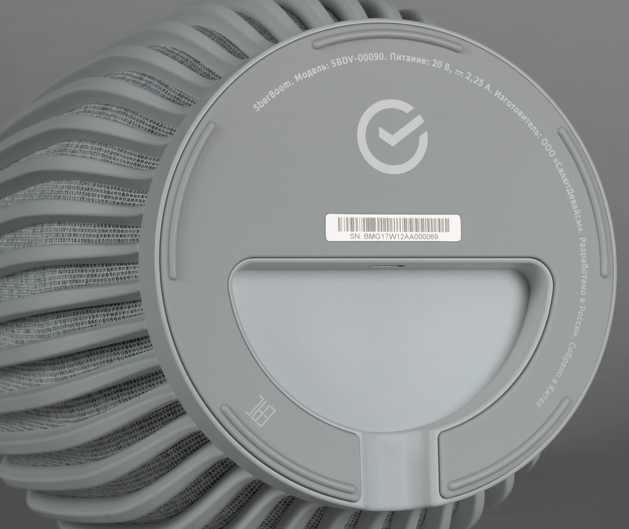 На старте продаж SberBoom будут предлагаться только в цвете «черная материя», чуть позже появятся «туманный белый», «лунный серый», «галактический синий» и «марсианский красный». У нас на тестировании была серая колонка.