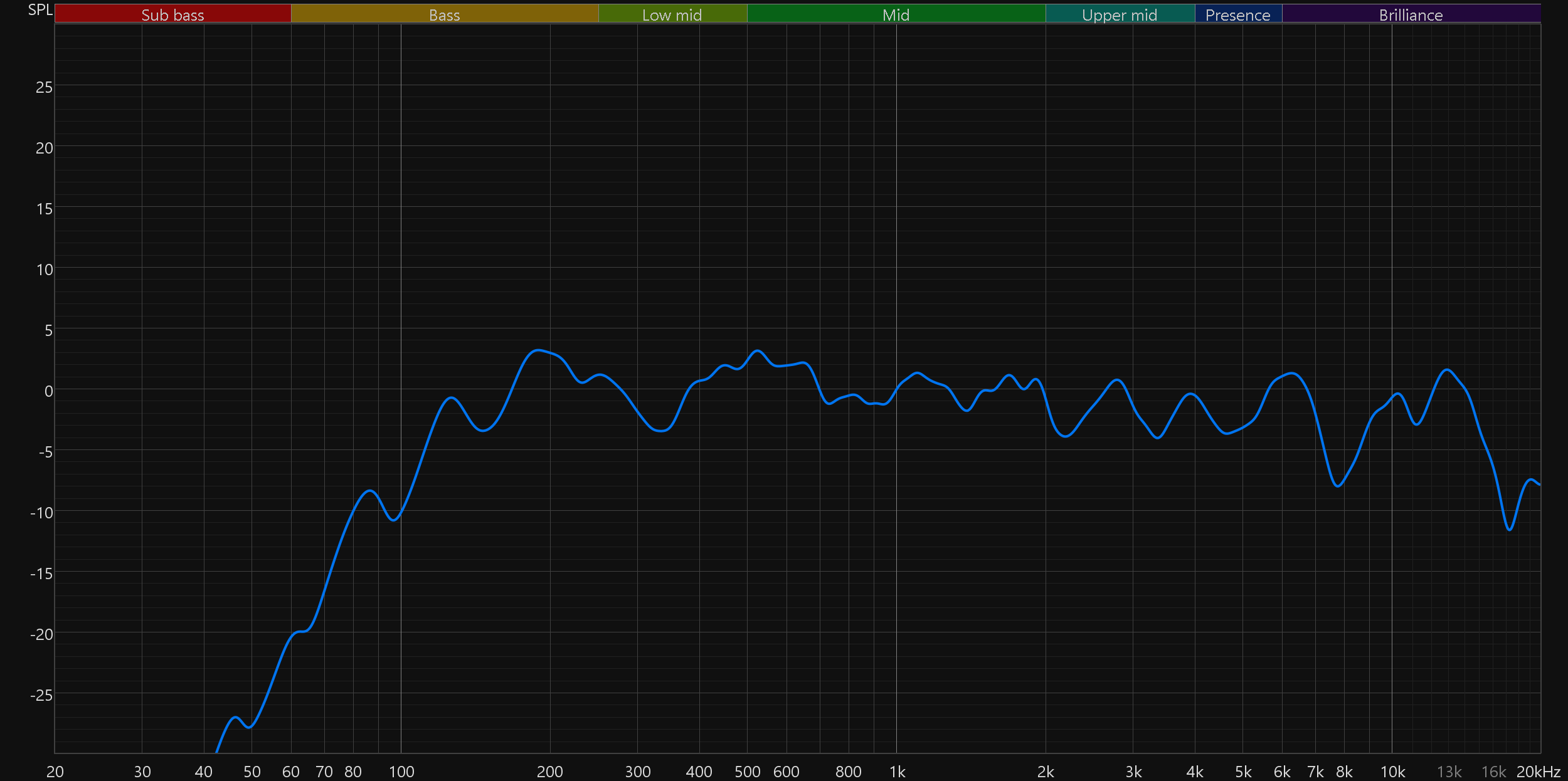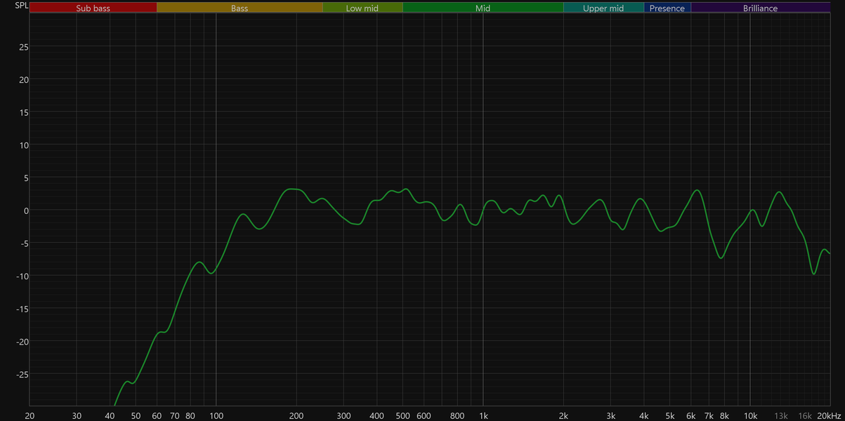 Далее графики усредняются, давая нам общую картину. Для маленькой колонки SberBoom Mini 2 звучит на удивление неплохо: обеспечивает ровную и приятную середину, более-менее читаемый ВЧ-диапазон, даже в область баса аккуратненько заходит, причем воспроизводит низкие частоты пусть и не очень эффектно, зато без лишних искажений и неприятного «гудения».
