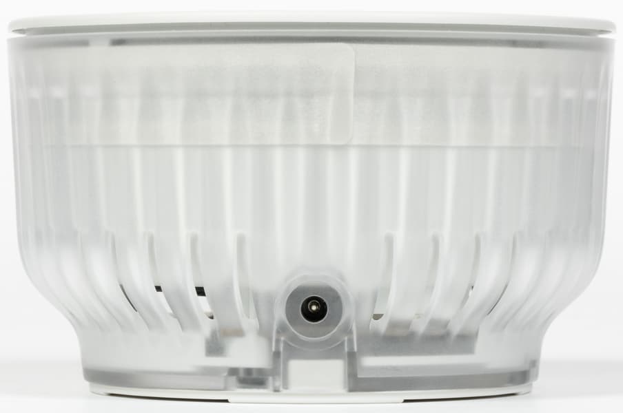 Сзади размещен разъем питания. В обеих версиях SberBoom Mini используется штырьковый разъем, а не USB Type C, как у другой акустики SberBoom. Вновь предположим, что такой выбор связан с возможностью настенного крепления колонки и тем, что она потенциально может часто перемещаться с места на место. Круглый штекер свободно крутится внутри разъема, поэтому кабель меньше подвержен изломам. Это с одной стороны, а с другой — если сделать кабель съемным и стандартным, его в случае повреждения можно просто заменить на новый. Так что решение по-прежнему спорное.