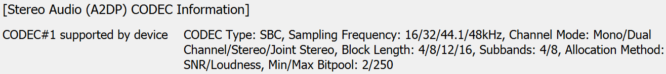 Мультипойнт не поддерживается, список используемых кодеков и их режимов мы традиционно получили с помощью утилиты Bluetooth Tweaker. Кодек всего один — базовый SBC, для маленькой пластиковой колонки его возможностей более чем достаточно.