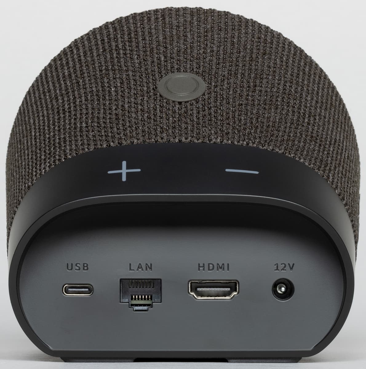 Сзади в нише расположены порты для подключения кабелей — USB Type C, проводной сетевой порт (без индикаторов), выход HDMI, вход блока питания.