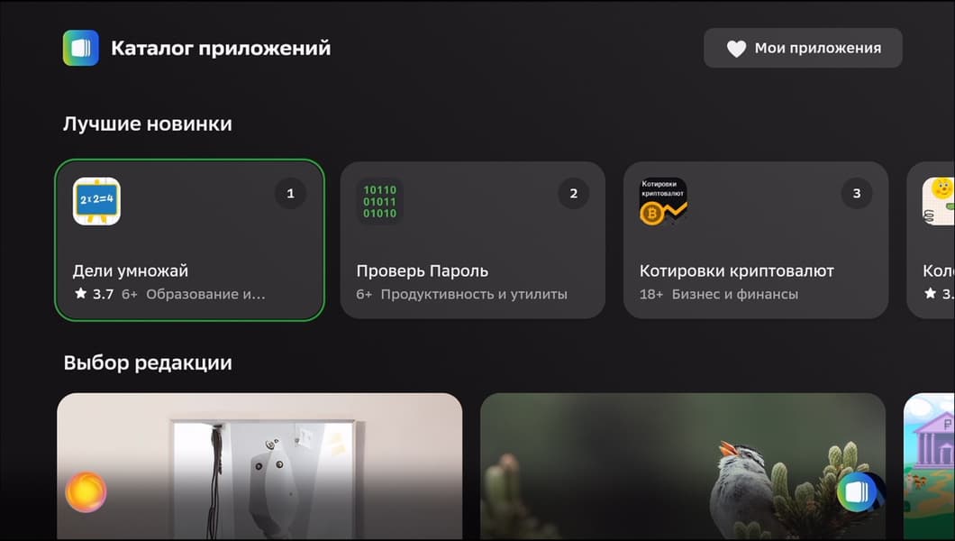Пользователю доступен каталог дополнительных приложений. Возможности установки собственных программ нет. В каталоге есть подборки, разбивка по категориям, рейтинги и другие знакомые по другим платформам возможности. На момент подготовки статьи общее число приложений в каталоге составляло около 1000. Отметим, что приложения имеют возможность взаимодействия с другими сервисами платформы, например, заказом продуктов, и встречаются действительно интересные варианты.