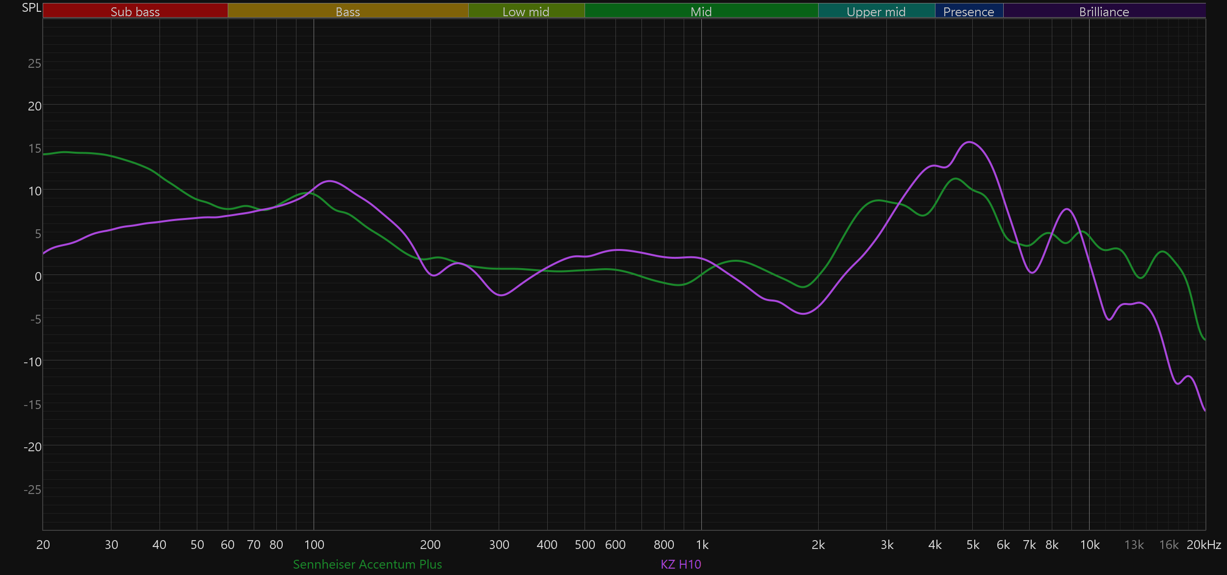 Динамики у Accentum Plus не самые крупные — 37 мм в диаметре. Во флагманской серии Momentum они больше, да и среди недорогих моделей 40 мм в последние годы стали негласным стандартом. Но это как раз тот случай, когда дело не в размере: наушники звучат по-настоящему хорошо — с характерной для Sennheiser фирменной окраской и приятным объемом. Для начала взглянем на график АЧХ в пассивном режиме — чтобы понять, на что они способны по умолчанию.