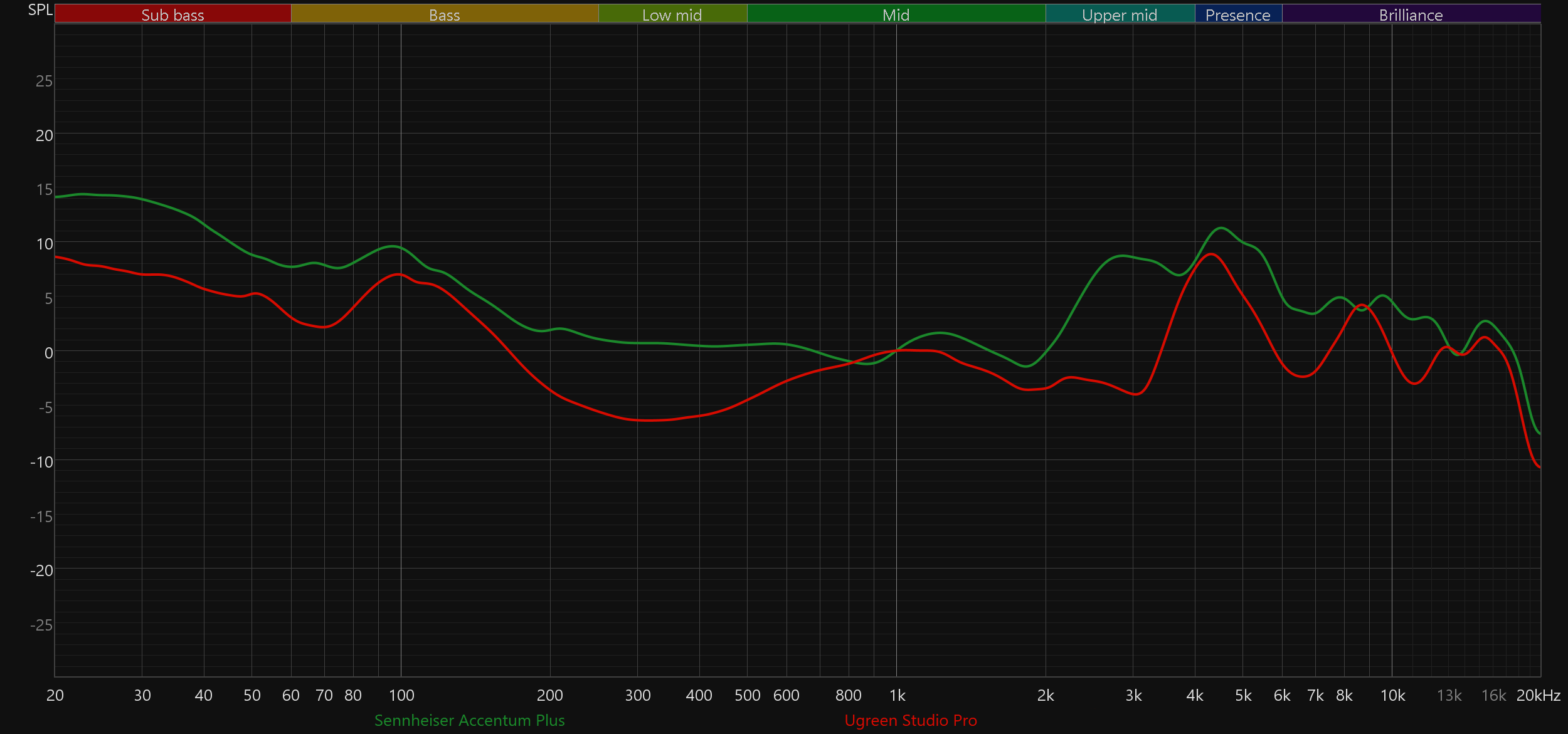 В качестве ответа на вопрос о том, почему для использования в потенциально сложных условиях мы не выбрали более дешевые наушники, сравним звучание Sennheiser Accentum Plus Wireless с рядом популярных бюджетных решений. Наиболее интересным соперником здесь стали Soundcore Space Q45 — мы даже всерьез рассматривали эту модель в качестве альтернативы. Стоит она заметно меньше, выглядит достойно и в эксплуатации вполне приятна, но по качеству звучания ощутимо уступает — и по графику, и, что важнее, по субъективным ощущениям. Тем не менее сбрасывать ее со счетов не стоит. В остальных случаях разрыв очевиден и дополнительных комментариев не требует.