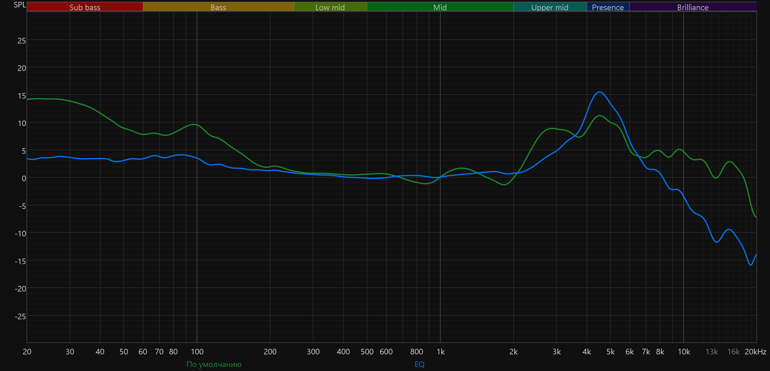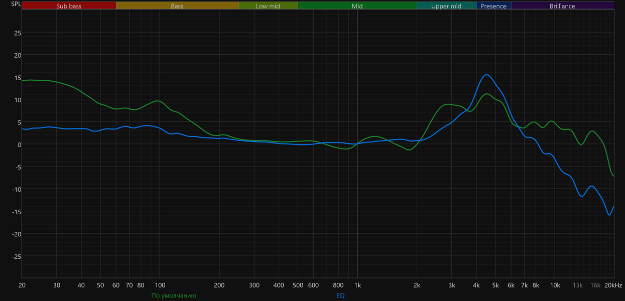 С помощью стороннего программного обеспечения нам удалось без особых усилий привести АЧХ наушников к практически полному соответствию целевой кривой. Формально это хороший результат, но на деле речь скорее о «спортивной эквализации» — практического смысла в ней немного: звук становится стерильно правильным и теряет характер. Тем не менее, если такой вариант кому-то пригодится для дальнейших экспериментов — вот ссылка на файл с настройками.