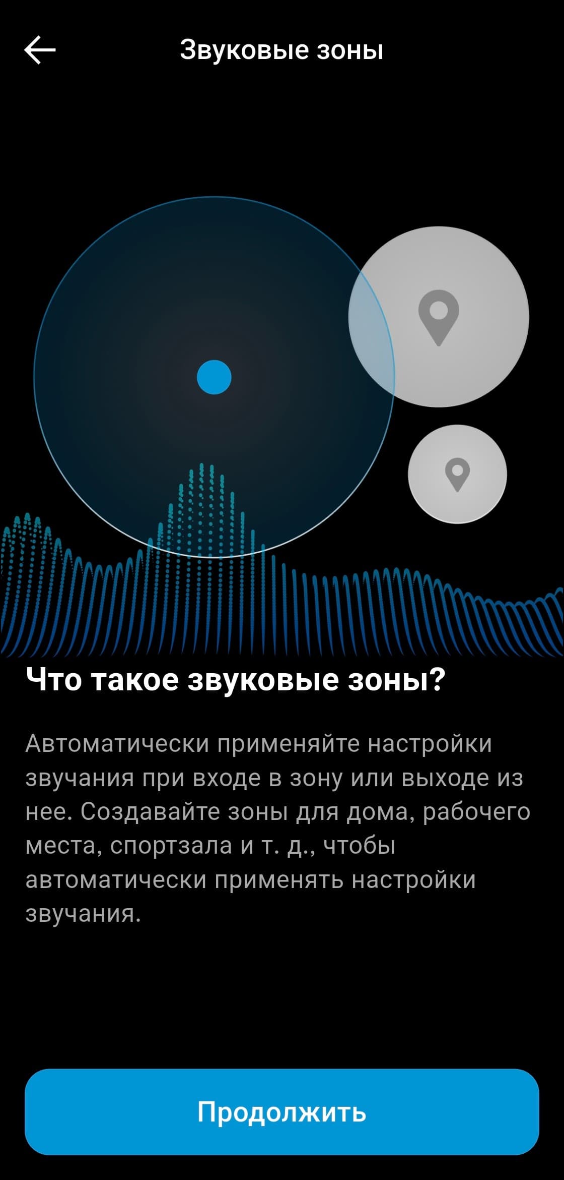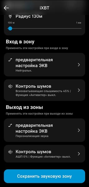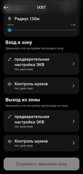 Еще одна интересная опция — так называемые «звуковые зоны». Когда подключенный смартфон оказывается в заданной геолокации, гарнитура может автоматически менять настройки эквалайзера и системы шумоподавления. Для работы этой функции, разумеется, потребуется разрешение на доступ к геопозиции.