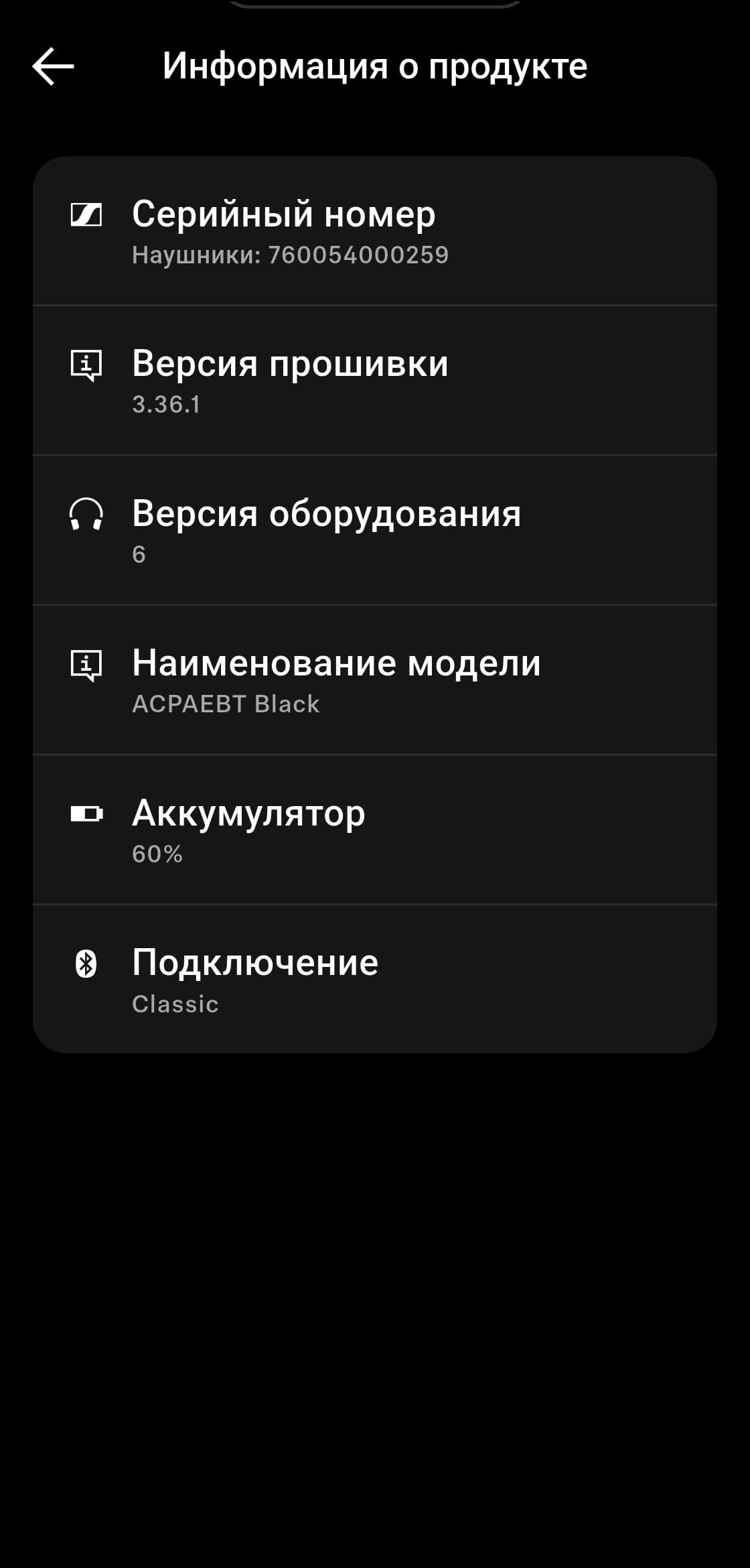 В разделе с информацией о продукте отображаются различные технические данные, там же можно принудительно проверить наличие обновлений прошивки, а также почитать инструкцию.