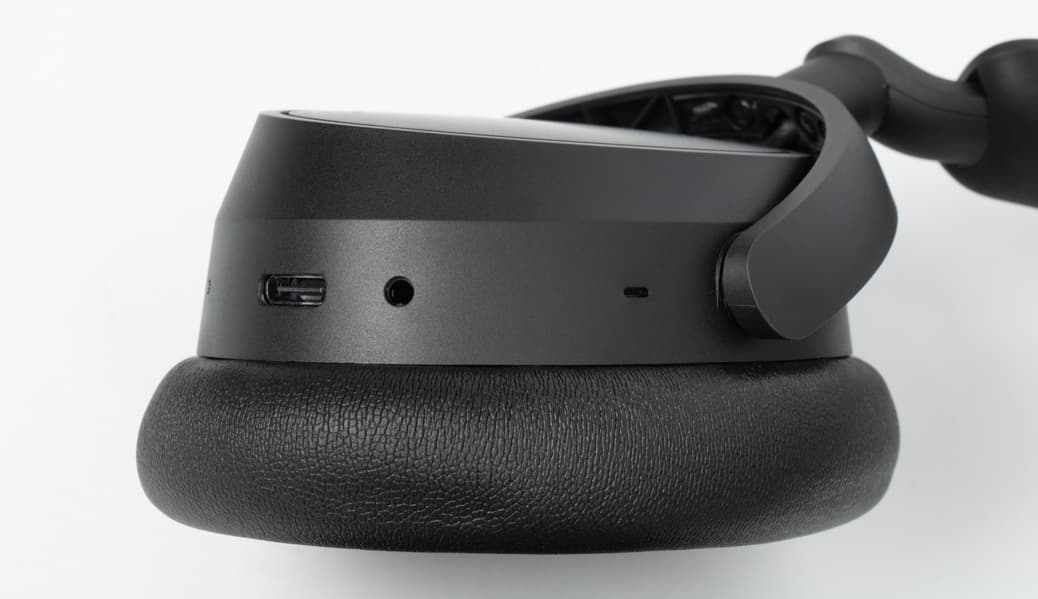 Sennheiser Accentum Plus Wireless поддерживает три типа подключения: беспроводное по Bluetooth 5.2, аналоговое в пассивном режиме и через USB. Все необходимые разъемы находятся в нижней части правой чашки. Аналоговое соединение устанавливается традиционно просто: один конец комплектного кабеля вставляется в наушники, другой — в источник. При подключении коннектора к разъему микроджек 2,5 мм устройство автоматически отключается и переходит в пассивный режим.