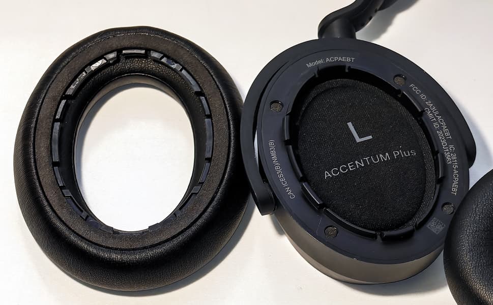 Простая конструкция и полностью пластиковый корпус дают приятный «побочный эффект»: масса Sennheiser Accentum Plus Wireless составляет всего 227 г — заметно меньше, чем у большинства полноразмерных моделей, что самым положительным образом сказывается на комфорте при длительном ношении. Амбушюры выполнены из искусственной кожи хорошего качества, внутреннее отверстие имеет стандартный размер — 60×40 мм. Ушные раковины средней величины помещаются без проблем. В помещении внутри может становиться жарковато — тут всё как обычно, зато на улице в прохладную погоду наушники уверенно справляются с ролью «шапкозаменителя».
