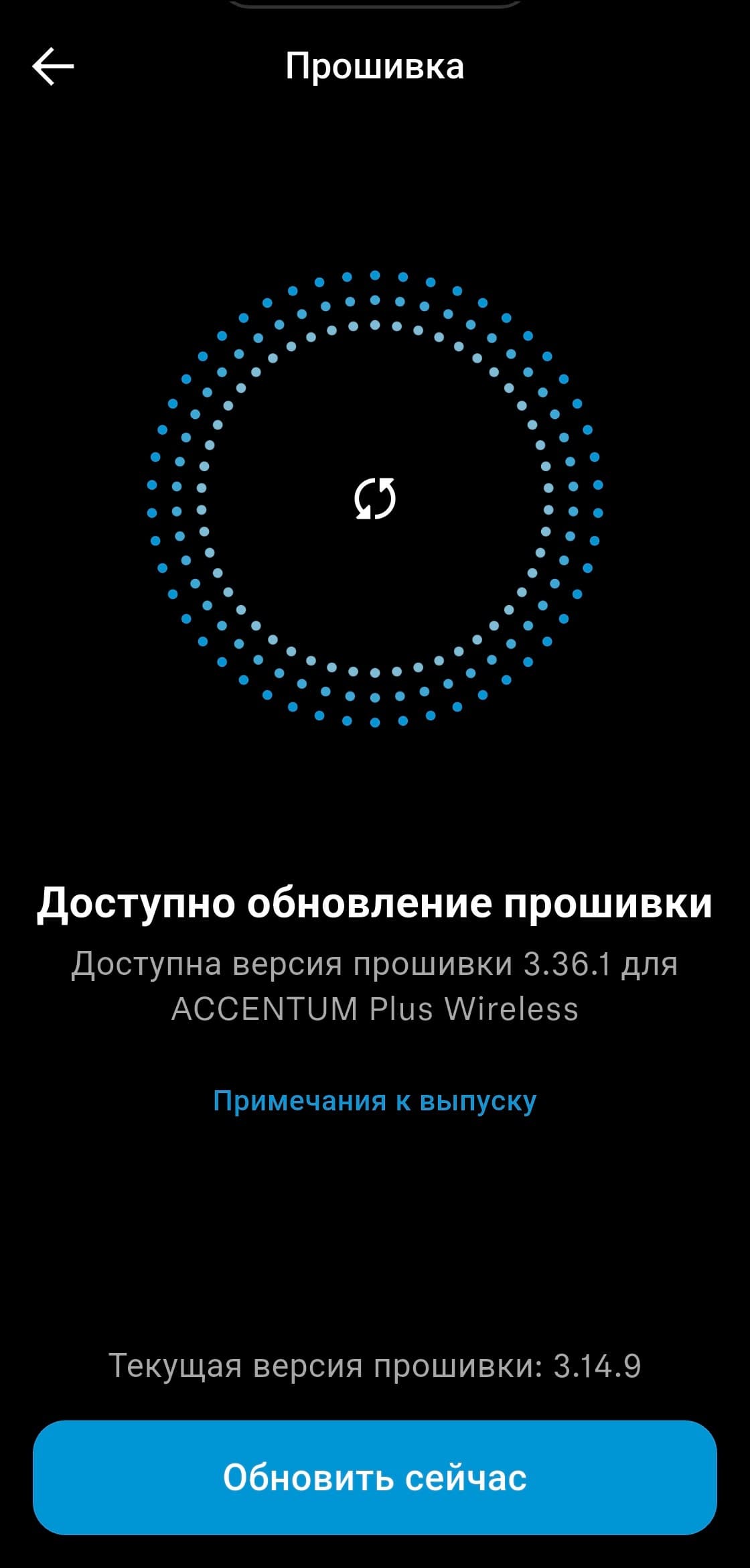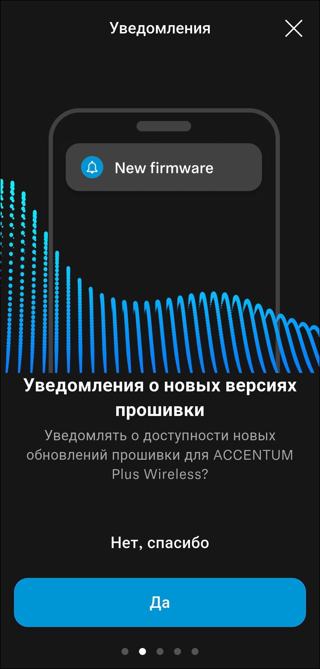 Следом за демонстрацией инструкций приложение переходит к проверке наличия обновлений прошивки, если находит — устанавливает.