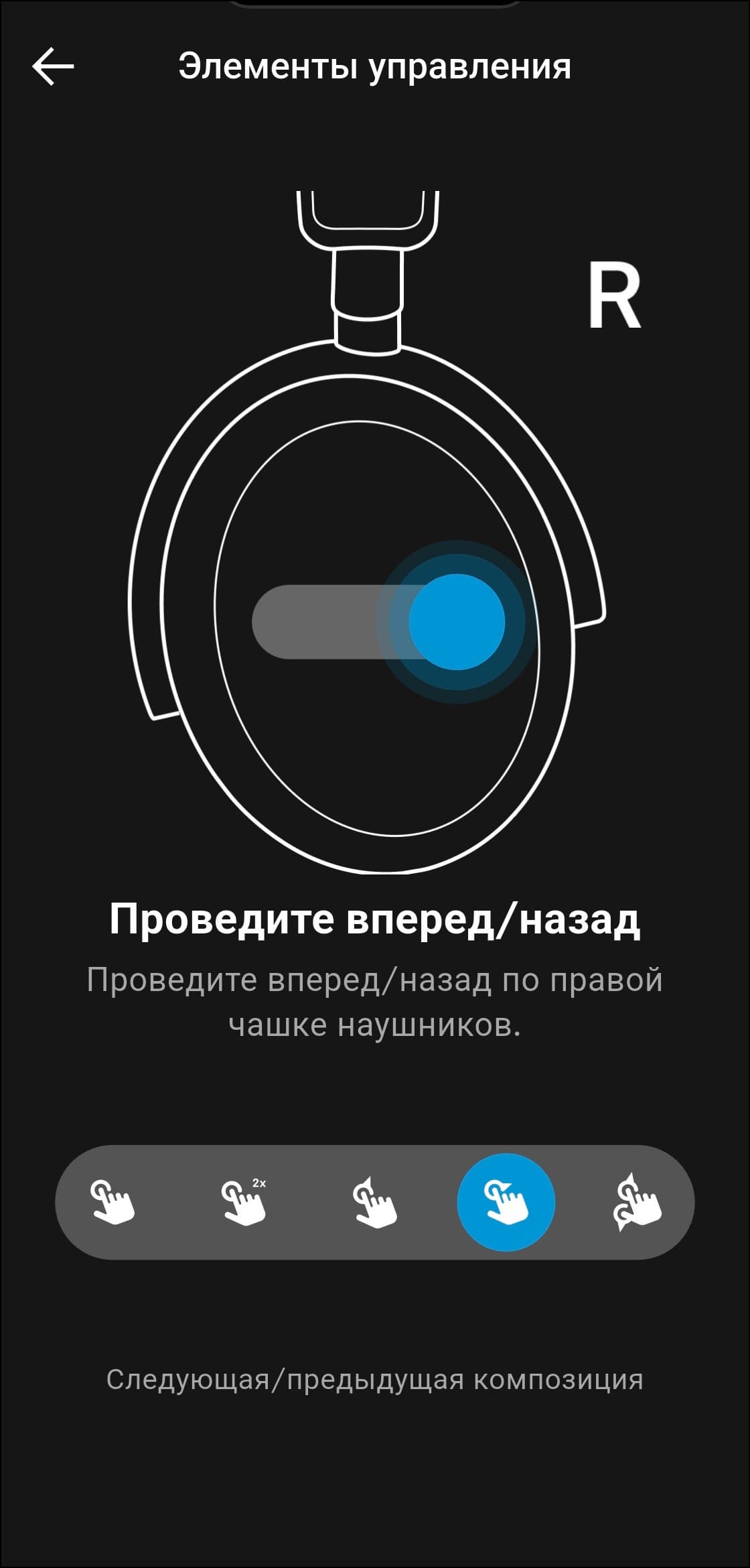 Как уже упоминалось выше, для управления Sennheiser Accentum Plus используется крупная сенсорная панель с поддержкой жестов, расположенная на внешней стороне правой чашки. Профиль управления логичный и в целом интуитивно понятный, но ознакомиться с инструкцией, которую предлагает приложение, все же не помешает.
