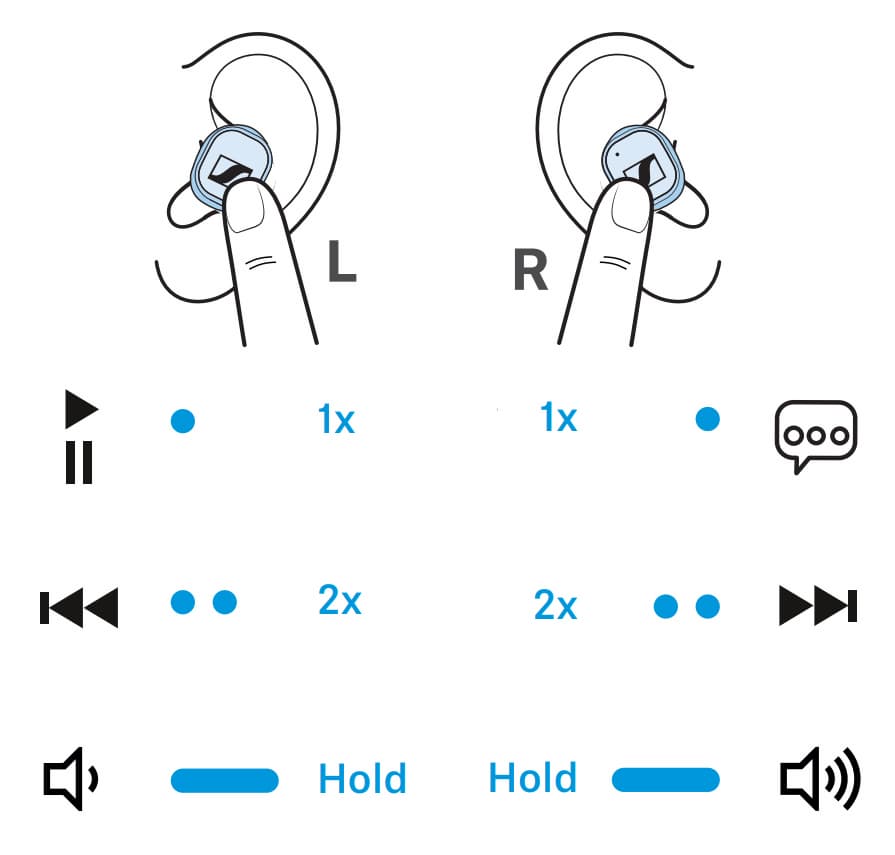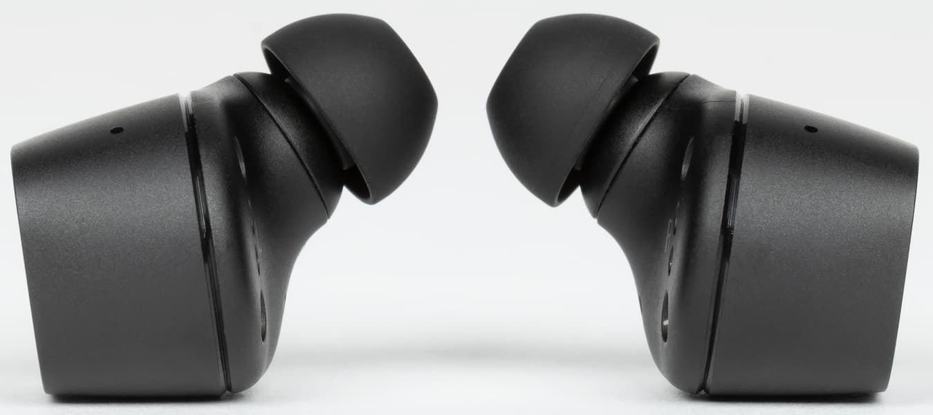 Форма внешней части корпуса CX 400BT отличается от Momentum True Wireless II, а вот внутренней — практически нет. Соответственно, по уровню комфорта ношения они почти неотличимы. И все комплименты, которые мы делали флагманской модели, в полной мере относятся и к героине сегодняшнего теста. Она прекрасно держится в ухе, не вызывает дискомфорта и остается на своем месте при беге, прыжках через скакалку и прочих активностях. Естественно, при условии правильного подбора амбушюров и помещении в ухо чуть вкручивающим движением, как показано в инструкции.