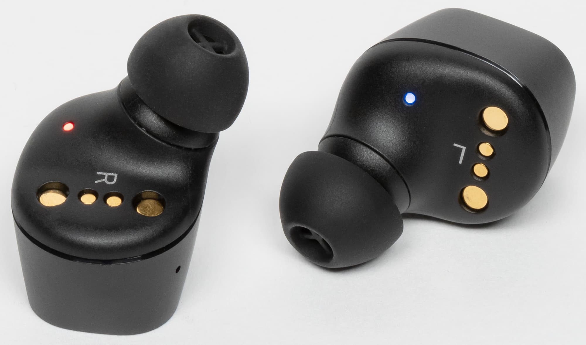 Кроме того на внутренней части корпуса расположены контакты для зарядки, ответные части для магнитных креплений в кейсе, обозначения правого и левого наушника.