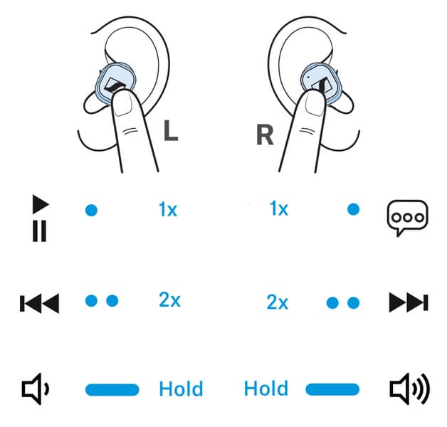 Управляется гарнитура с помощью сенсорных панелей, к которым мы традиционно относимся с некоторой опаской. Во многих устройствах, причем не только из бюджетного сегмента, они заставляют скучать о старых-добрых кнопках и стараться пользоваться для управления звуком другими гаджетами — умными часами, например. У Sennheiser проблем с этим никогда не было, да и не появилось — сенсоры СХ 400BT работают отлично, корректно воспринимая как одиночные нажатия, так и двойные и даже тройные. Чуть-чуть привыкнуть надо лишь к правильной задержке между ними. Помогают в этом короткие звуковые сигналы при каждом прикосновении.