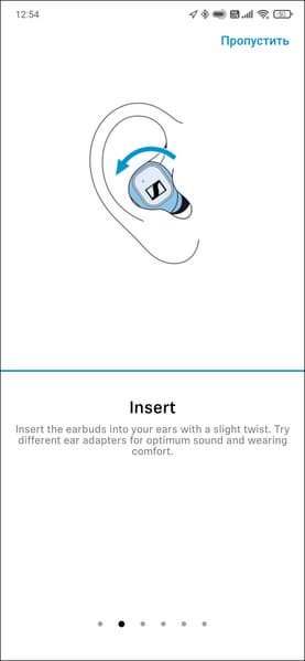 После того, как Sennheiser CX Plus True Wireless найдена и добавлена, ПО предлагает познакомиться с краткой инструкцией. Почему-то она отобразилась на английском языке — возможно, просто не успели еще перевести. В любом случае, разобраться там несложно — все просто и понятно.