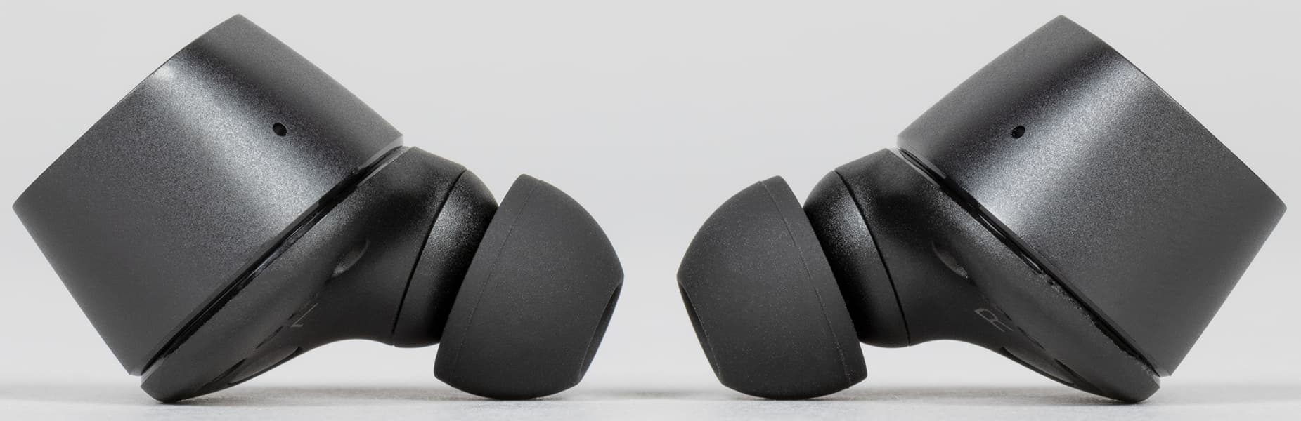 Амбушюры тоже выглядят вполне традиционно для Sennheiser — подобные мы видели у всех протестированных TWS-наушников бренда. Внутреннее отверстие насадок закрыто крестообразным элементом, предотвращающим слишком глубокую их посадку на звуковод и обеспечивающим первоначальную защиту от проникновения загрязнений.