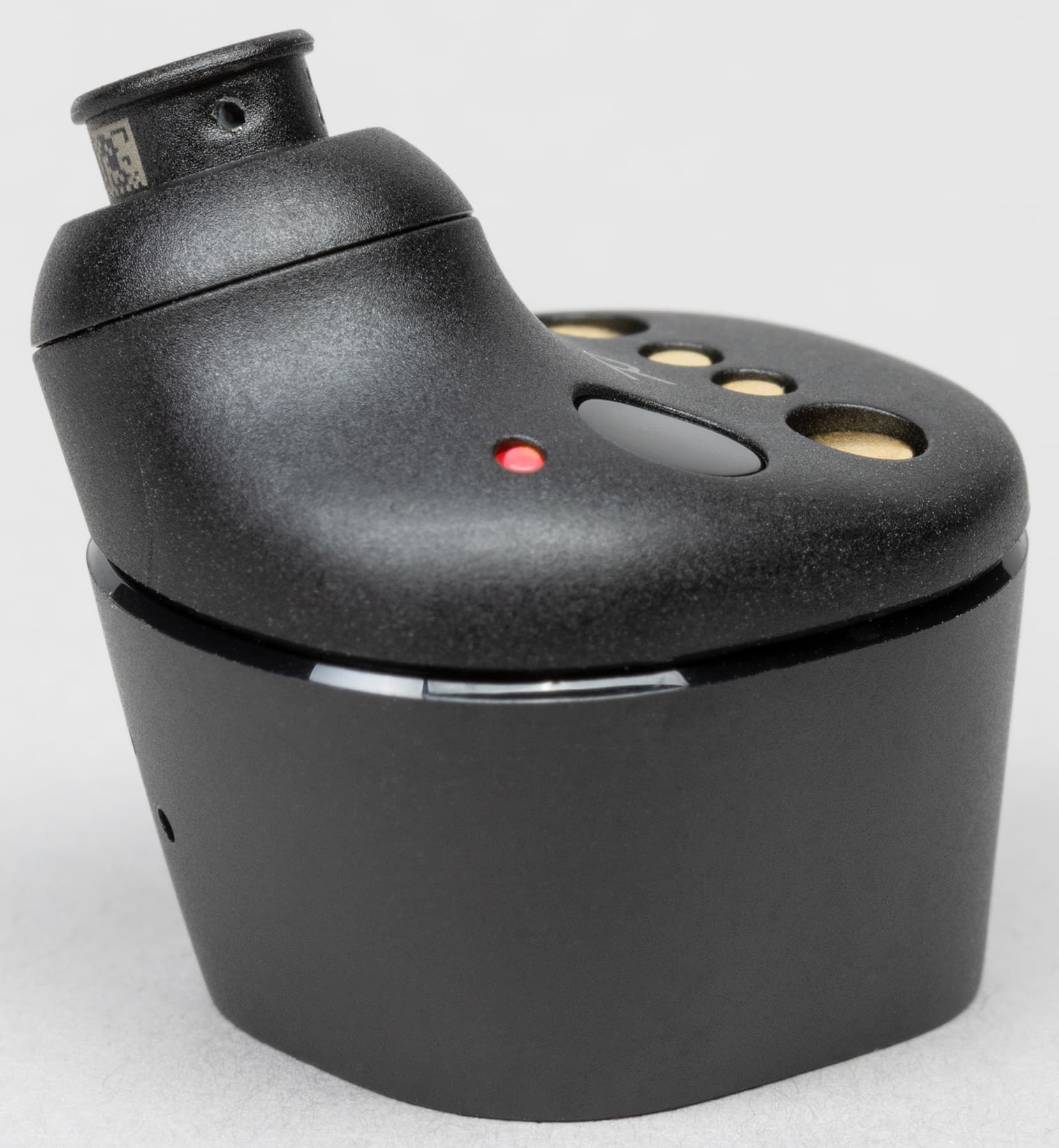 Двухцветный светодиодный индикатор расположен на внутренней стороне корпуса. Отличное решение — и текущий статус можно посмотреть, и никакой заметной окружающим «светомузыки» при ношении гарнитуры. Там же размещены контакты для зарядки и ответные элементы для магнитов в кейсе, обозначения «правый»/«левый» и окошки инфракрасных датчиков ношения.