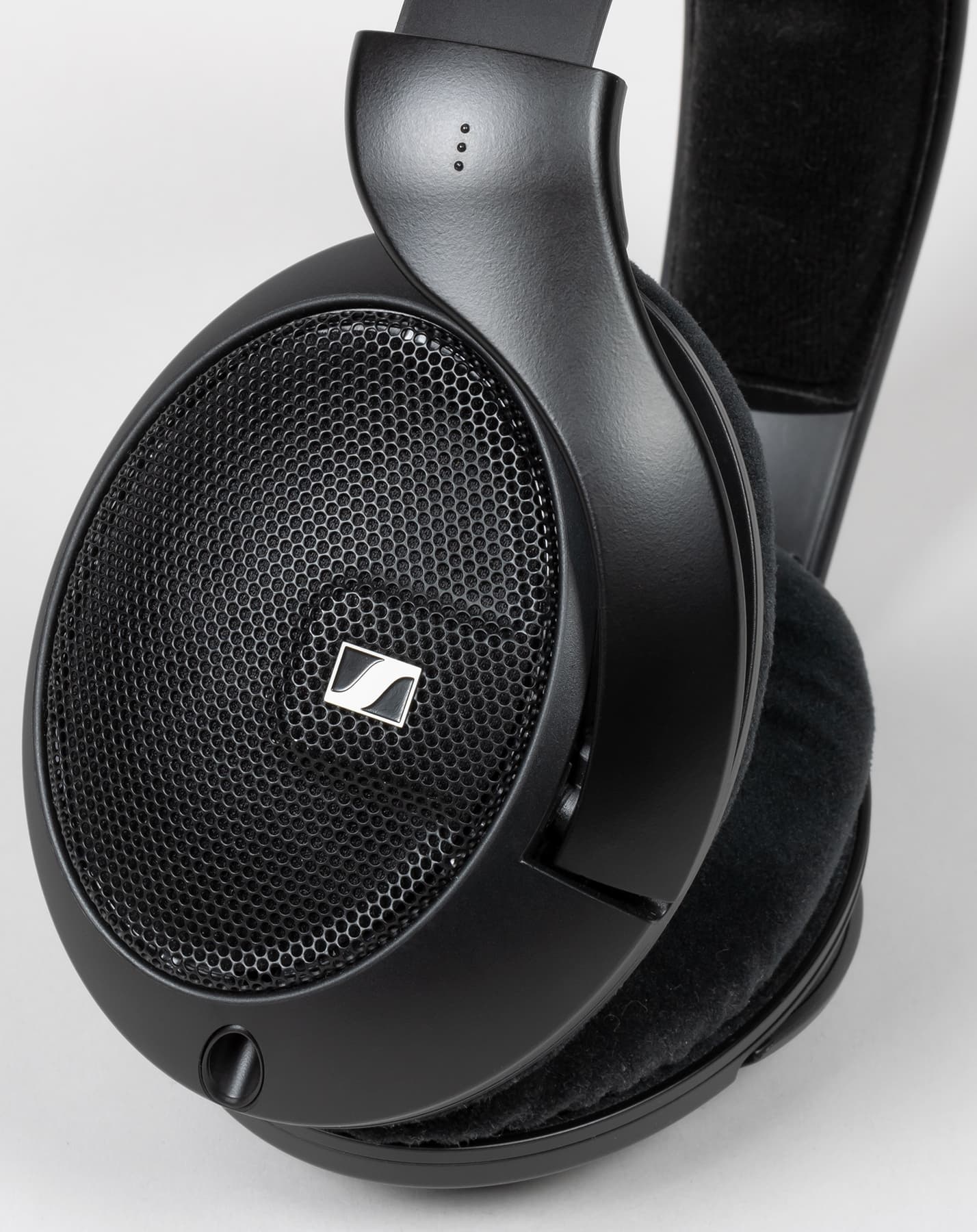 Масса наушников при этом — всего лишь 240 г, на голове они почти не ощущаются. Если по звуку HD 560S ближе к известной модели HD 660S, то по особенностям исполнения корпуса — к ультралегким HD 599. После пары часов непрерывного использования появляются первые признаки дискомфорта, но избавиться от них можно просто чуть-чуть увеличив размер дуги, ослабив таким образом давление на голову. Хотя оно и так не слишком велико, что особенно порадует носящих очки слушателей.