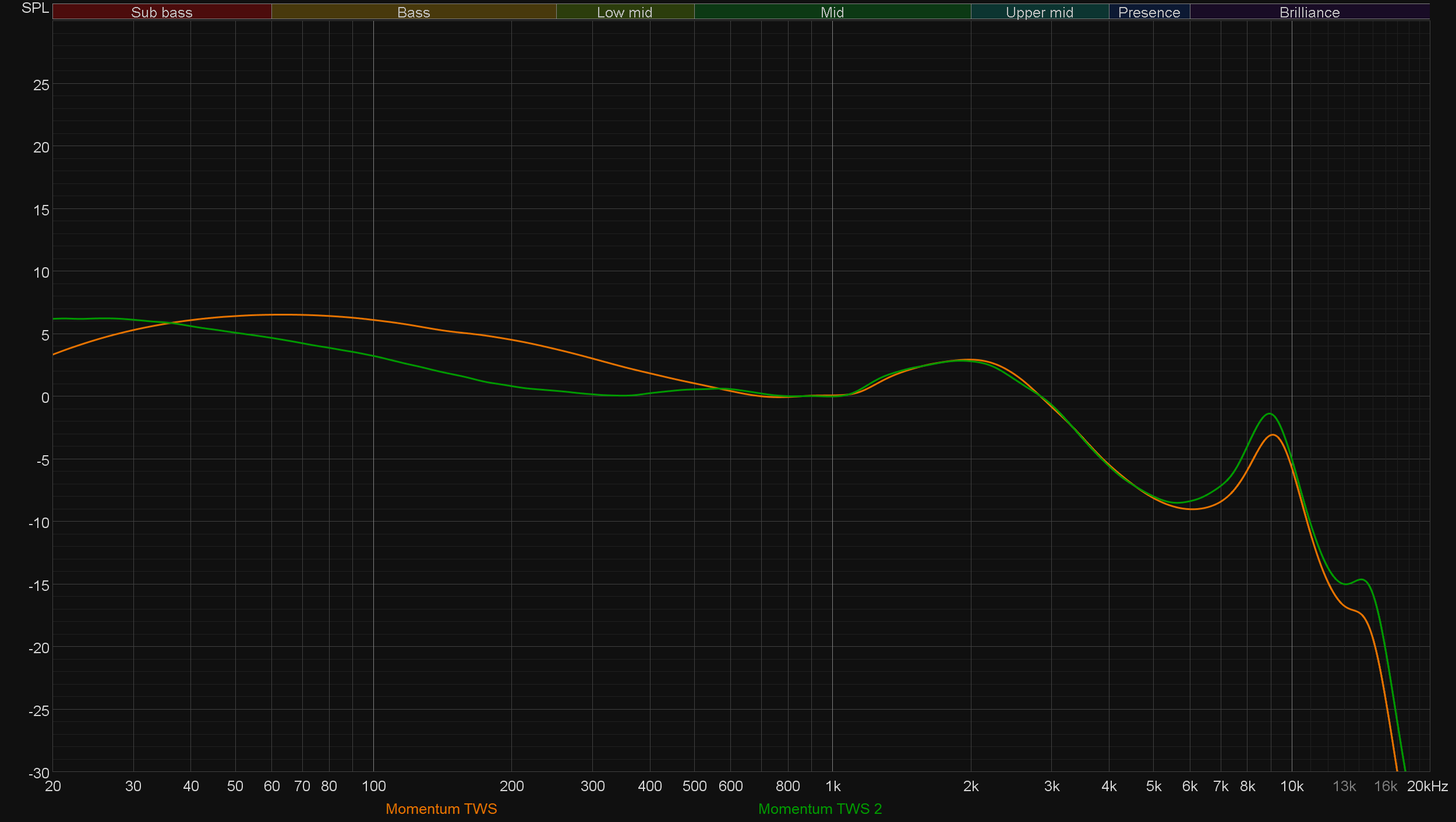Ну а звучат СХ 400BT совершенно точно также, как и флагман в лице Momentum True Wireless 2 — графики АЧХ это убедительно доказывают. Небольшая разница в передаче НЧ-диапазона вполне может быть связана с формой амбушюров и невозможностью обеспечить идеально одинаковую посадку наушников на тестовый стенд. Производитель обещал те же драйверы и тот же звук, но без «дополнительных фишек» — обещание выполнено. Больше и добавить особенно нечего.