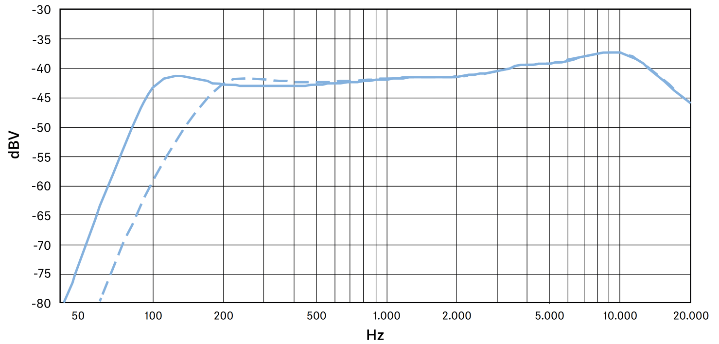 Как можно заметить, к низкочастотным шумам микрофон предсказуемо более чувствителен, о чем тоже нужно помнить. В большинстве случаев рационально использовать низкочастотный фильтр, обрезающий самую нижнюю часть диапазона. Чудес от него ждать не стоит, но от гудения толпы или низкочастотной части шума какого-нибудь кондиционера, например, он поможет. Опять же при съемке в помещении можно избавиться от лишнего гула. Ну и на улице лучше сразу надевать ветрозащиту, конечно — даже легкие порывы ветра могут основательно подпортить запись, а заодно и настроение при монтаже.