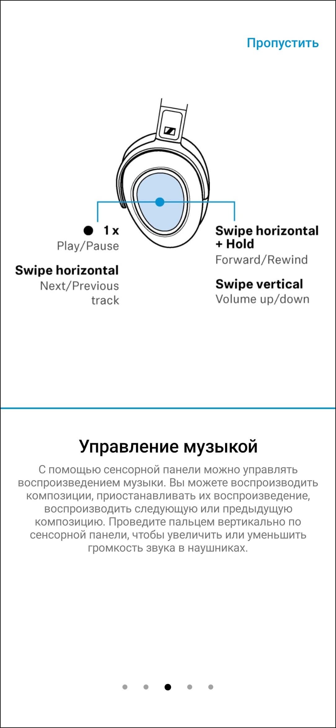 Управление гарнитурой осуществляется с помощью приложения Smart Control, доступного для устройств под iOS и Android. Как уже упоминалось выше, можно подключить наушники к гаджету с его помощью, либо просто добавить уже сопряженное устройство. После этого приложение предлагает ознакомиться с краткой инструкцией.