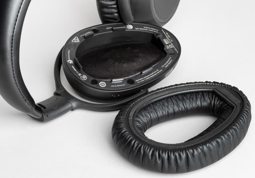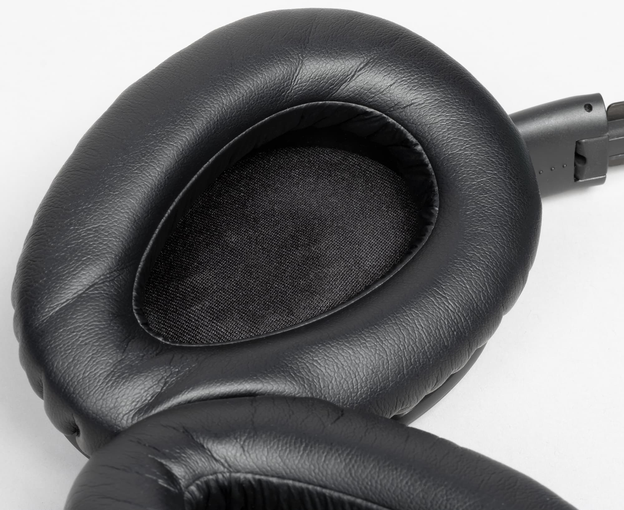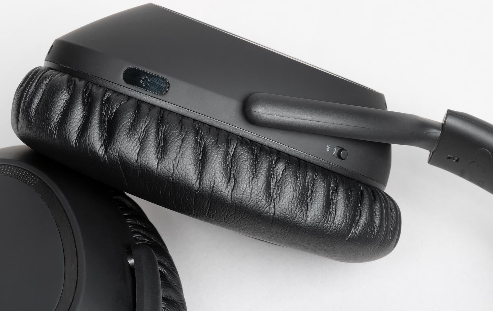 Отделка не настолько «премиальная» как у флагманских Momentum 3 Wireless, но весьма и весьма солидная: оголовье обтянуто качественной искусственной кожей с мягкой подкладкой внутри, большая часть корпуса выполнена из очень приятного на ощупь матового пластика.