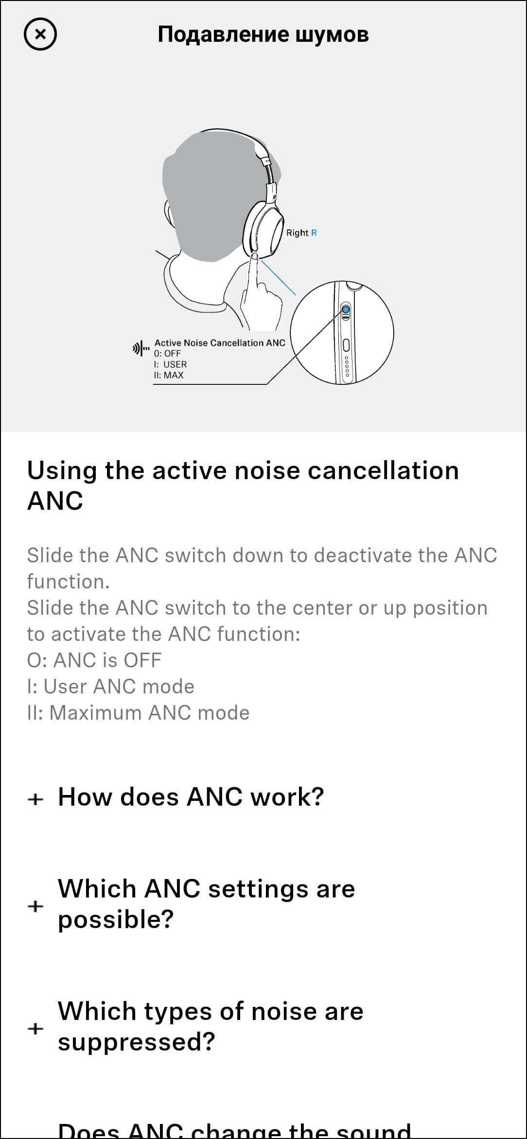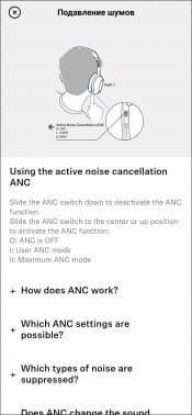 Но с ним в любой ситуации однозначно лучше, чем без него. Кроме того, пассивная звукоизоляция у PXC 550-II тоже хороша — вместе они дают весьма впечатляющий результат. Однако на максимальном уровне эффективности система активного шумоподавления может приводить к знакомому многим пользователям чувству «давления в голове». В таком случае можно немного пожертвовать эффективностью ради комфорта. Для этого переводим регулятор на наушниках в среднее положение, а в приложении выбираем нужный нам вариант работы системы.