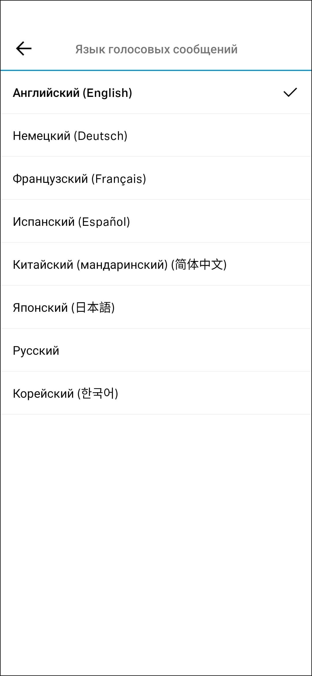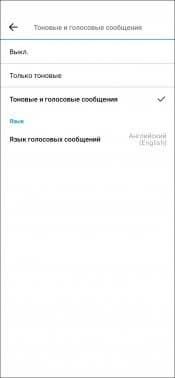 На отдельной вкладке можно выбрать голосовые или тоновые сообщения, а также настроить язык последних. Нам на трех используемых для тестов устройствах так и не удалось сменить язык на русский — приложение выдавало ошибку. Но, вероятно, это могло быть особенностью предоставленного нам тестового экземпляра.