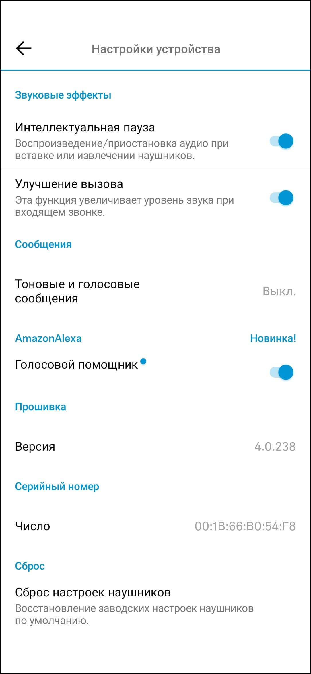 В инструкции к наушникам говорится, что кнопка вызова голосового помощника может использоваться как для обращения к Amazon Alexa, так и к другим предустановленным на смартфоне голосовым помощникам. Доставшийся нам экземпляр гарнитуры упорно не хотел работать ни с кем, кроме Алексы. А при нажатии клавиши жаловался, что соединение с ней до сих пор не настроено. Версия прошивки гарнитуры при этом использовалась самая свежая на тот момент, устройства-источники были несколько раз заменены…