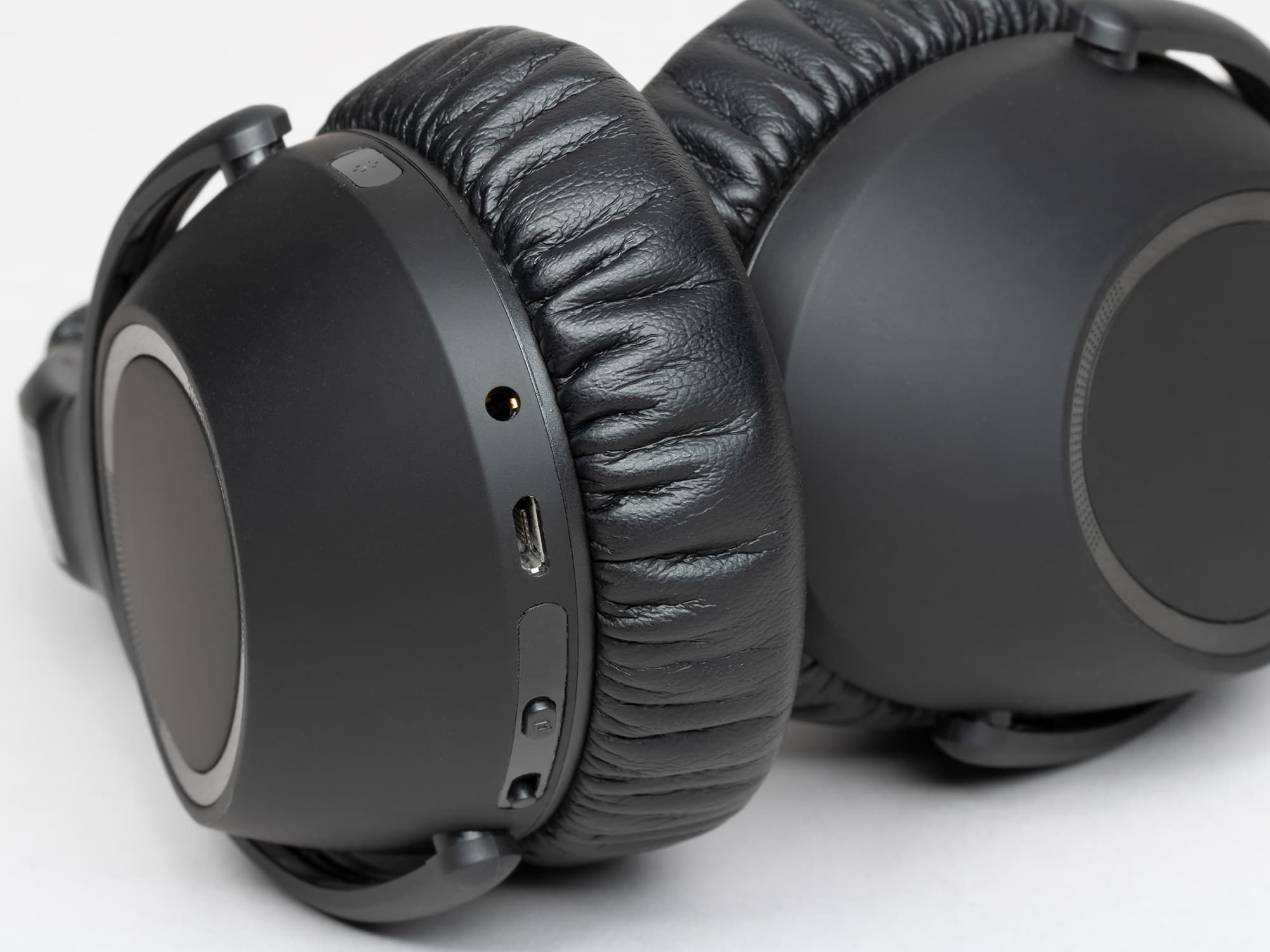 В нижней части расположены разъем микроджек (2,5 мм) для подключения к источнику звука и Micro-USB для зарядки. Последнее, конечно, немного расстраивает — хотелось бы видеть современный USB Type C — на момент выхода гарнитуры он уже был более чем актуален.