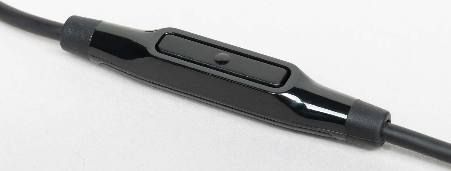 Кабель миниджек (3,5 мм) — микроджек (2,5 мм) имеет длину 140 см, в верхней его части расположен компактный пульт с одной кнопкой и микрофоном.