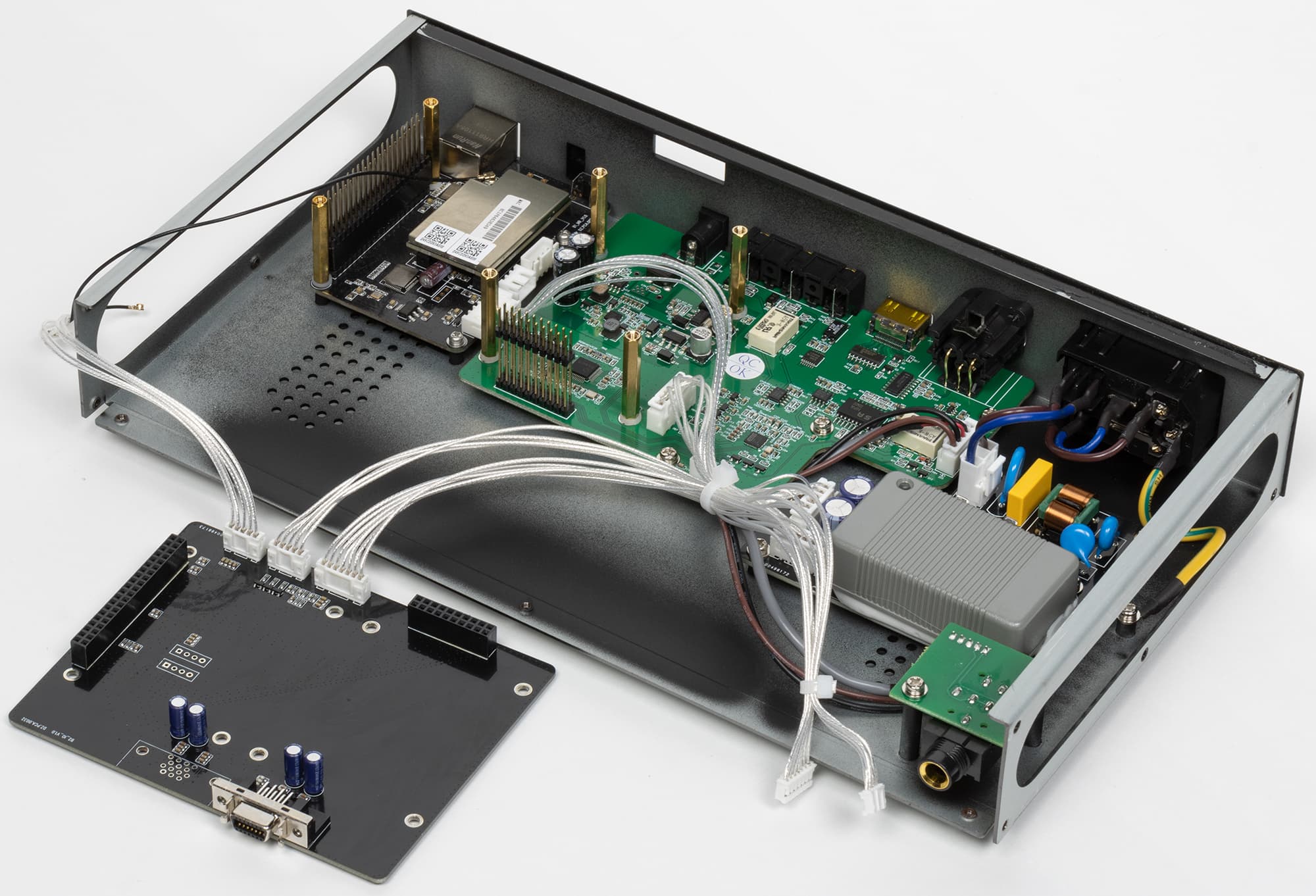 А вот что действительно расстроило, так это прочно приклеенная крышка, скрывающая наполнение платы блока питания. Демонтировать ее без риска повредить устройство невозможно — пришлось оставить на месте. Между тем, производитель в маркетинговых материалах делает немало акцентов на том, что питание организовано особым образом, обеспечивает сниженный уровень шумов... ну и так далее. Прошлая модель Silent Angel Bremen B1 даже поставлялась с базовым внешним блоком питания, а при желании можно было докупить БП Forester F1, сравнимый по стоимости с самим плеером. Теперь же производитель решил разместить все в одном корпусе, и было бы крайне любопытно посмотреть, как там все теперь устроено.