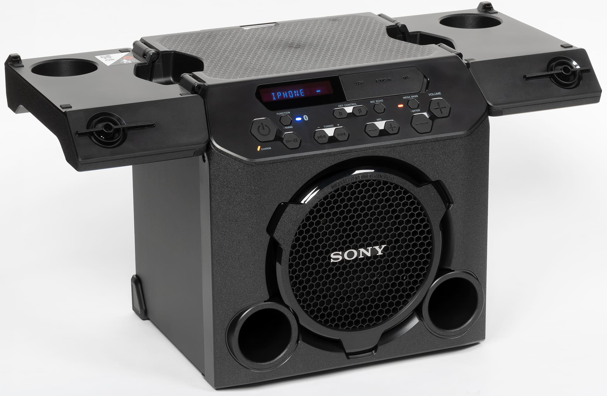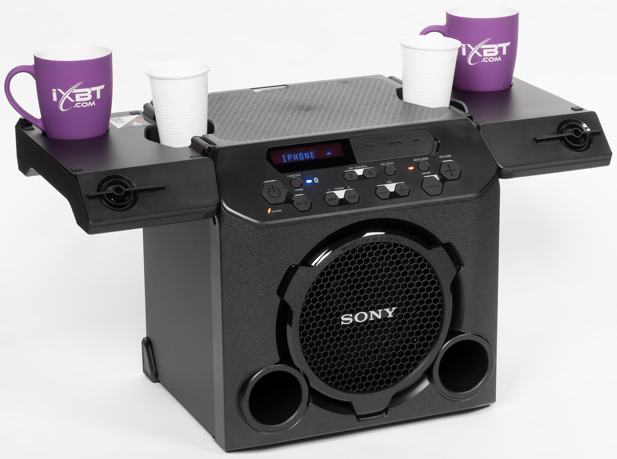 Форм-фактор модели Sony GTK-PG10 настолько оригинален, что сравнить ее особенно и не с чем — конкуренции в этом сегменте пока нет и не предвидится. Производителю удалось собрать в одном портативном устройстве все, что необходимо для вечеринки на свежем воздухе: можно «подиджеить» со смартфона, попеть караоке, включить фоном радио и так далее. Звук весьма приемлемый, возможность «раскинуть» высокочастотные динамики по бокам от корпуса позволяет добавить ему чуть объема. А заодно дает приятный бонус в виде столика, который помимо основной функции размещения закусок и напитков обеспечивает удивленные взгляды окружающих, впервые увидевших колонку.