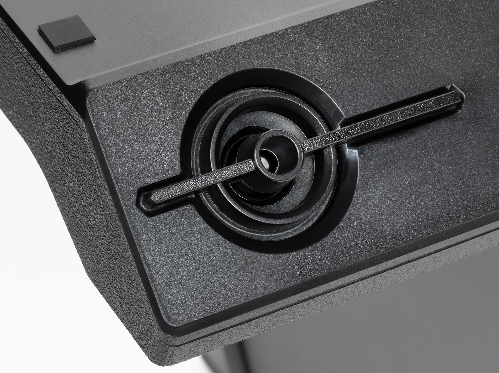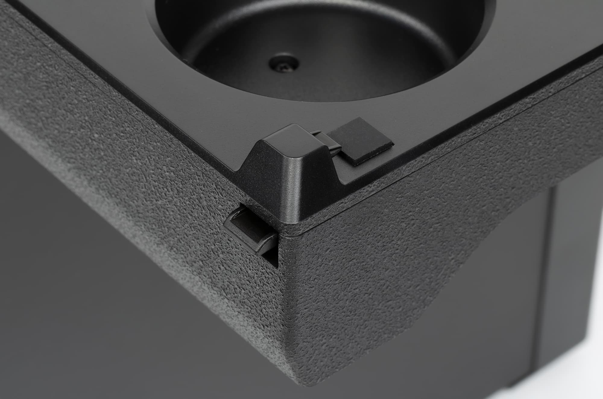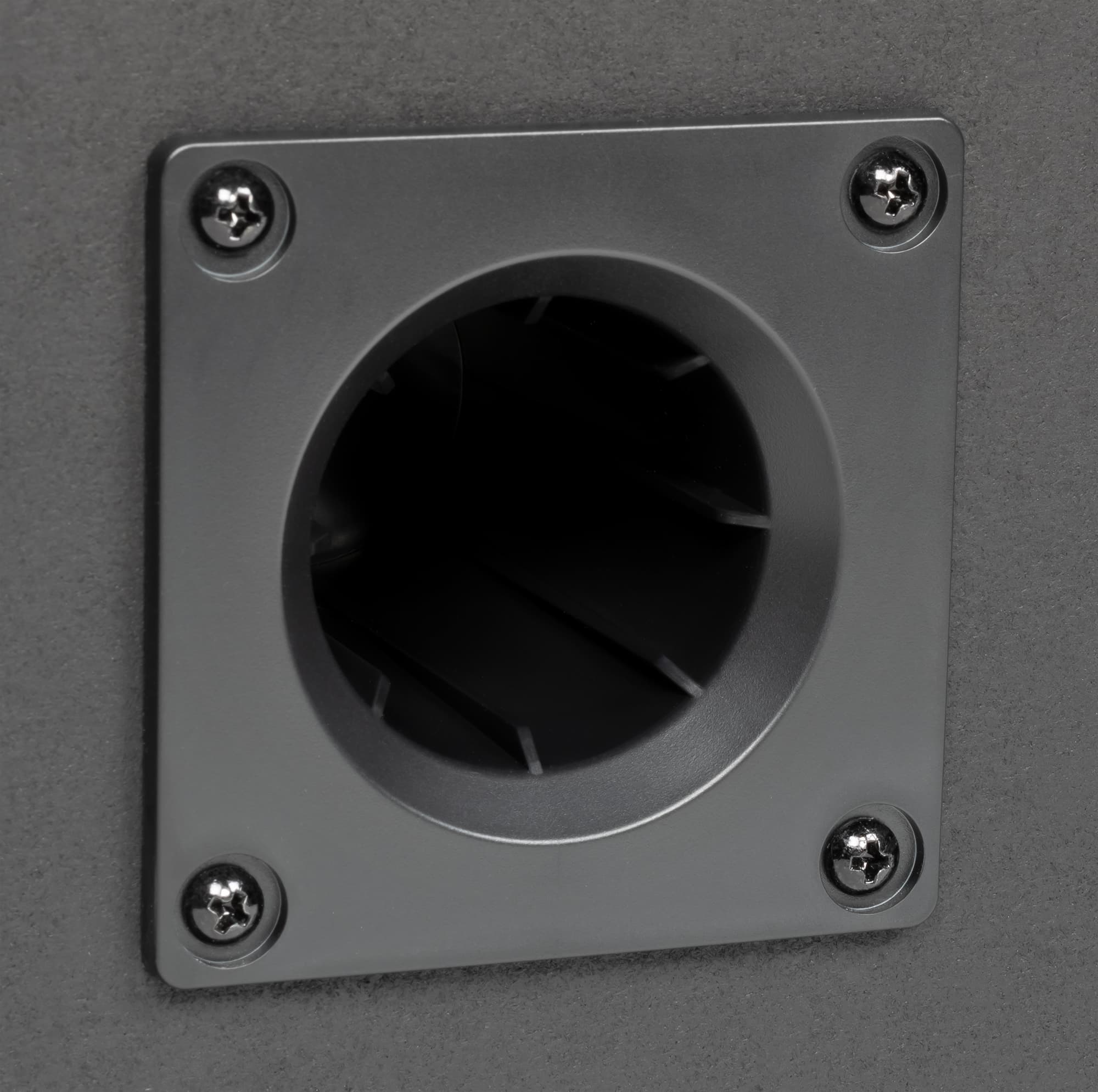 Верхняя часть колонки раскладывается, встроенные в нее высокочастотные динамики оказываются по бокам от основной части корпуса. По замыслу производителя такое положение, а также наклон твиттеров вперед и вверх позволяют охватить звуком большее пространство.