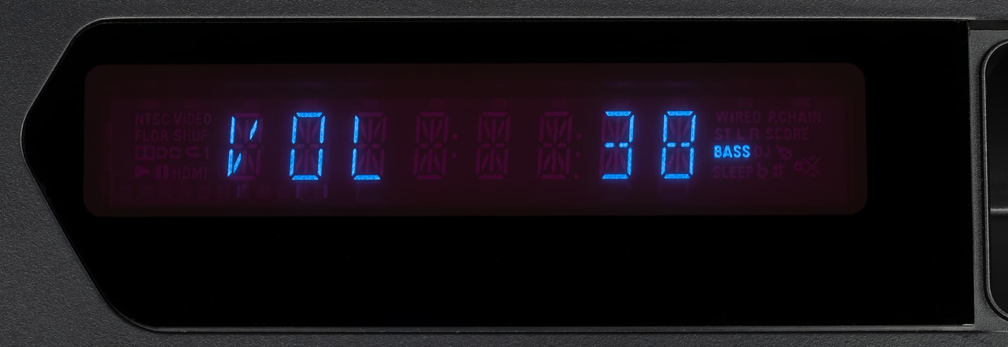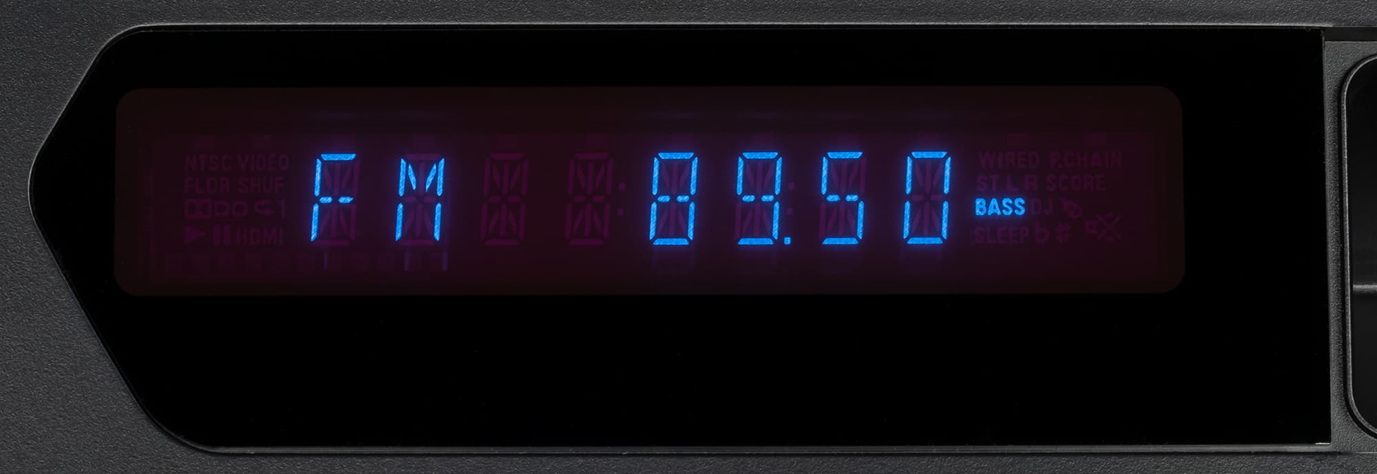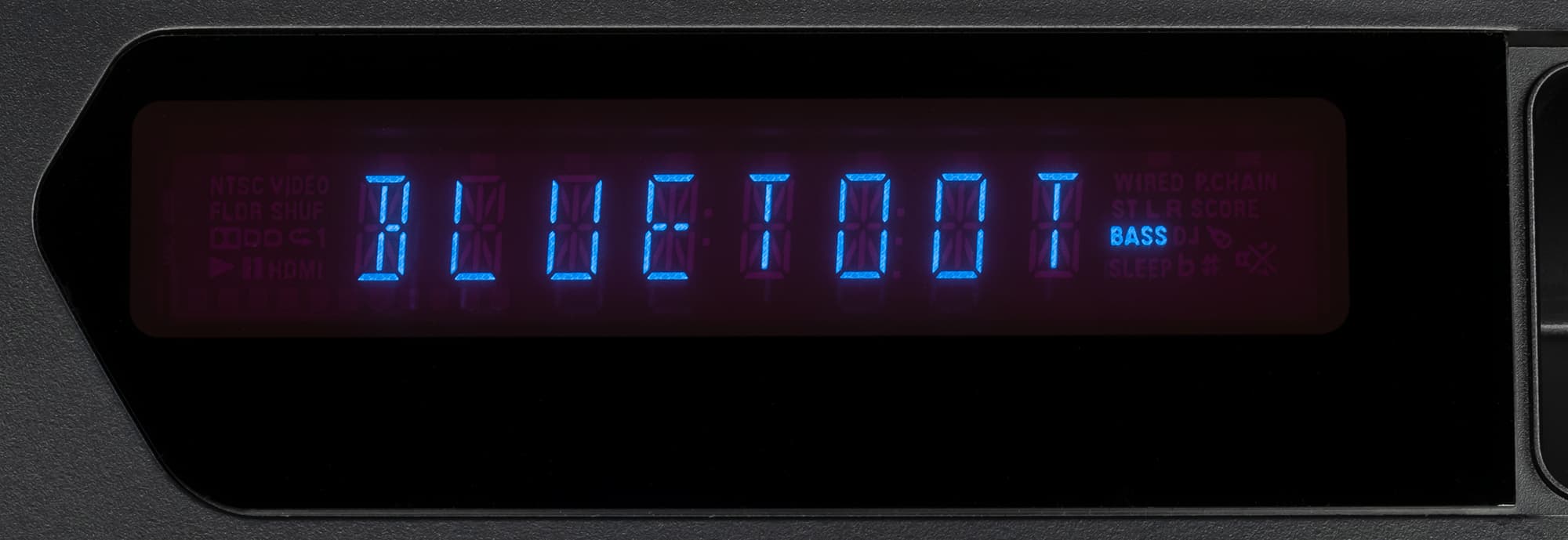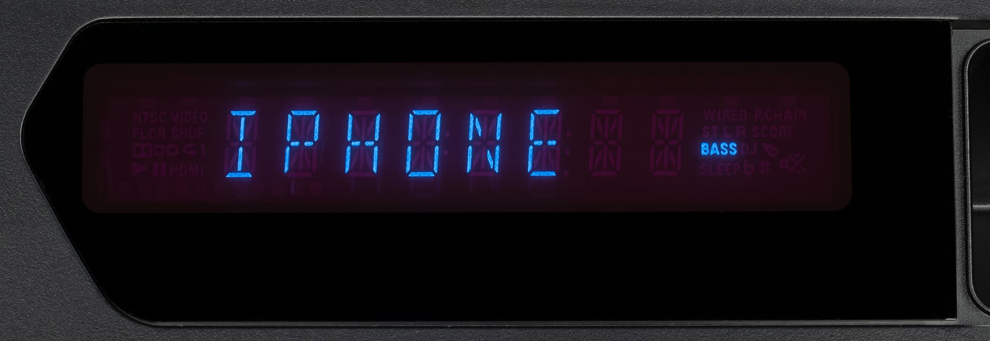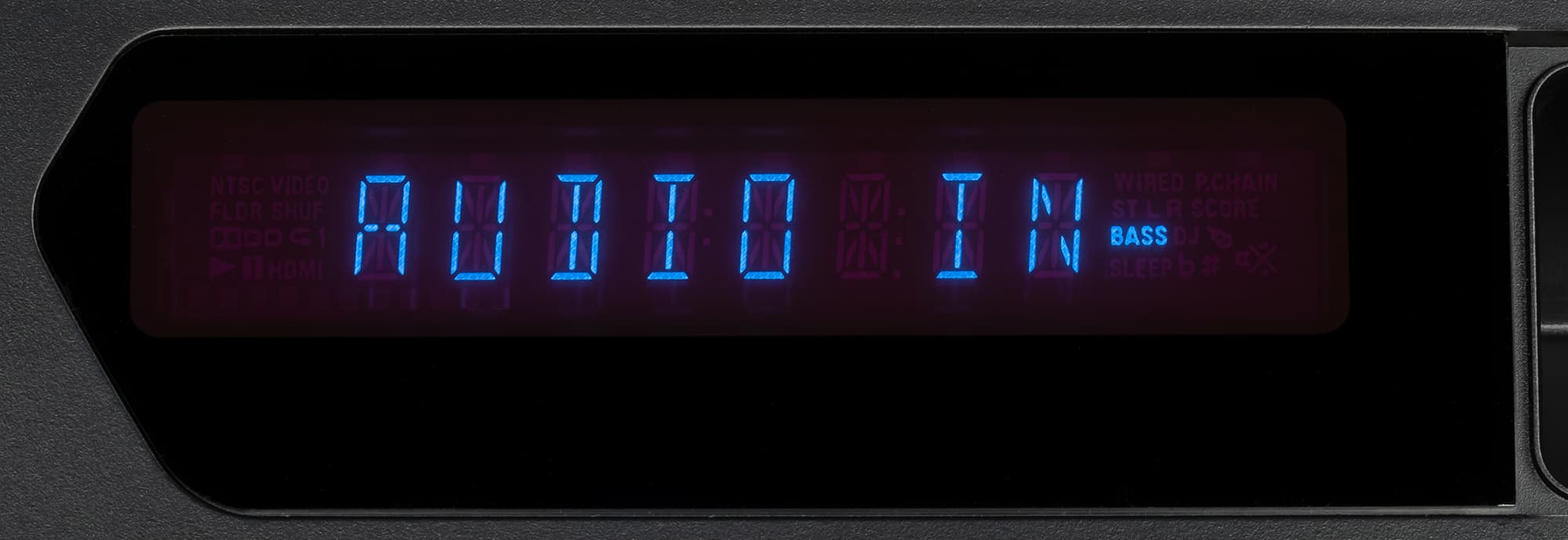Встроенный экран довольно информативен: он может отображать состояние устройства, громкость, тип подключения, имя сопряженного устройства и так далее. Но только латиницей, поддержки кириллицы нет. Названия папок и теги в воспроизводимых с USB-накопителя файлах отображаются, но опять-таки — только записанные латиницей. Если приглядеться к экрану повнимательнее, можно заметить наличие ряда иконок, не используемых в рассматриваемом устройстве — вероятно, он универсальный и также устанавливается в другие решения.