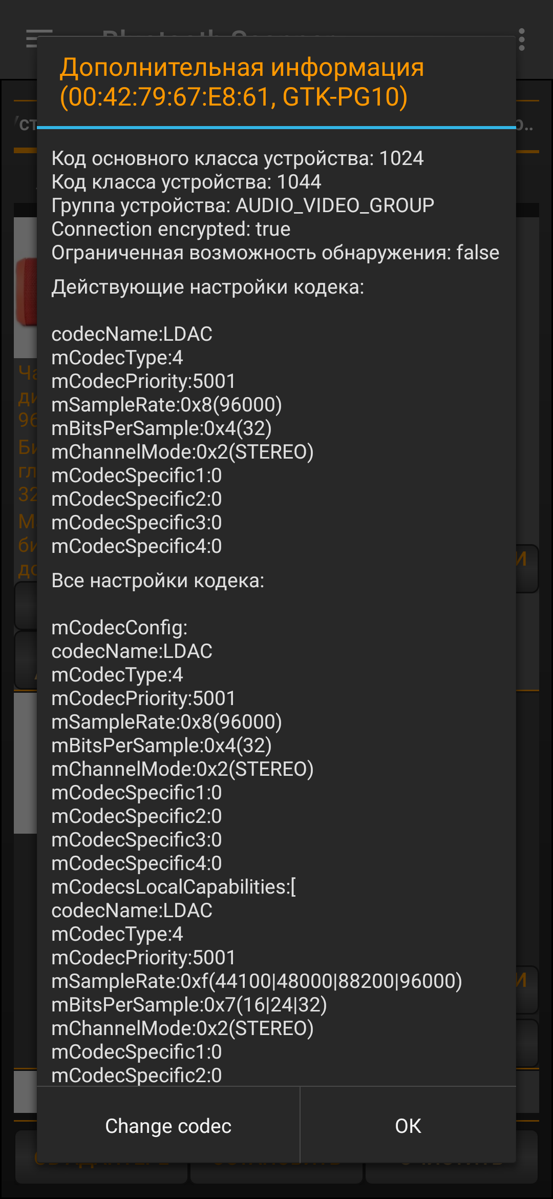 | Поддерживаемые кодеки | SBC, AAC, LDAC |