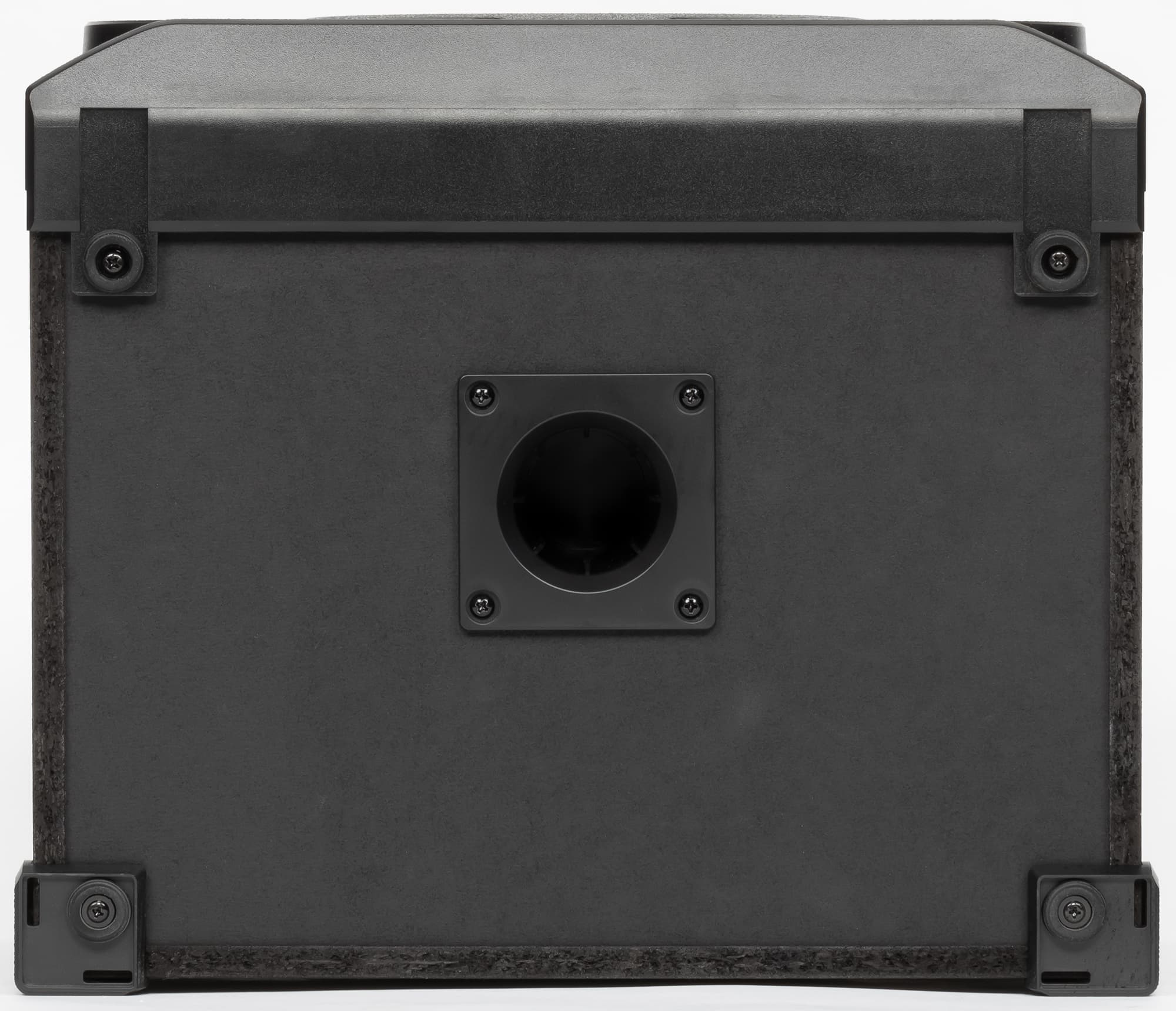 Внешне колонка напоминает что-то среднее между компактным гитарным комбоусилителем, музыкальным центром и переносным холодильником. Дизайн с одной стороны подчеркивает «основательность» устройства, с другой — не создает ощущения лишней массивности. Весит колонка, кстати, чуть меньше 7 кг. Но переносить ее довольно удобно за счет двух ручек по бокам, переместить ее от машины до места установки — точно не проблема. А на другие варианты транспортировки она, конечно, не очень рассчитана.