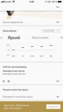 - включить или выключить шумоподавление, а также включить режим «Ambient Sound»