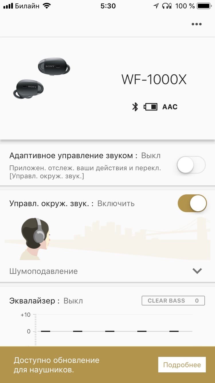 Работу наушников можно настроить с помощью фирменного приложения Sony Headphones Connect. Приложение позволяет: