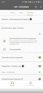 Обо всех своих действиях WF-1000XM4 оповещает голосовыми уведомлениями. По умолчанию они воспроизводятся на английском, но язык можно изменить в настройках (в том числе, и на русский). Ну и, наконец, если хочется начать все сначала — можно заново запустить гид по настройке, на который мы уже посмотрели выше.