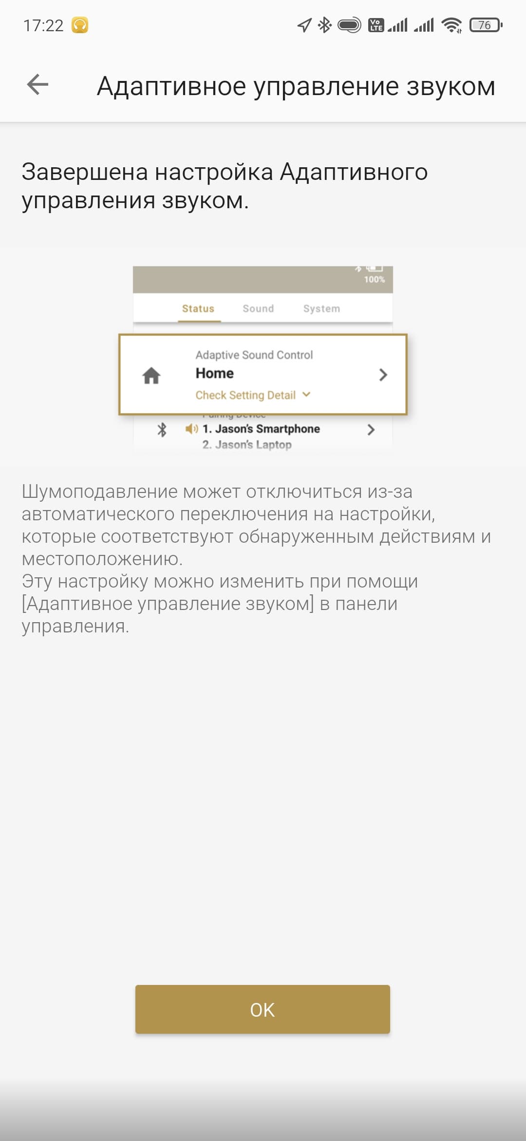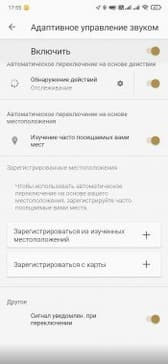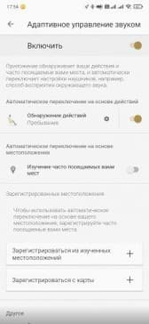 Для полноценной работы функции нужен доступ к геопозиции, который приложение настойчиво запрашивает. Некоторое время система собирает данные о часто посещаемых местах, запоминает используемые в них настройки и активирует их, как только пользователь вновь там оказывается. Довольно любопытная возможность, которая периодически действительно пригождается. Например, очень радует отключение «шумодава» при возвращении домой.