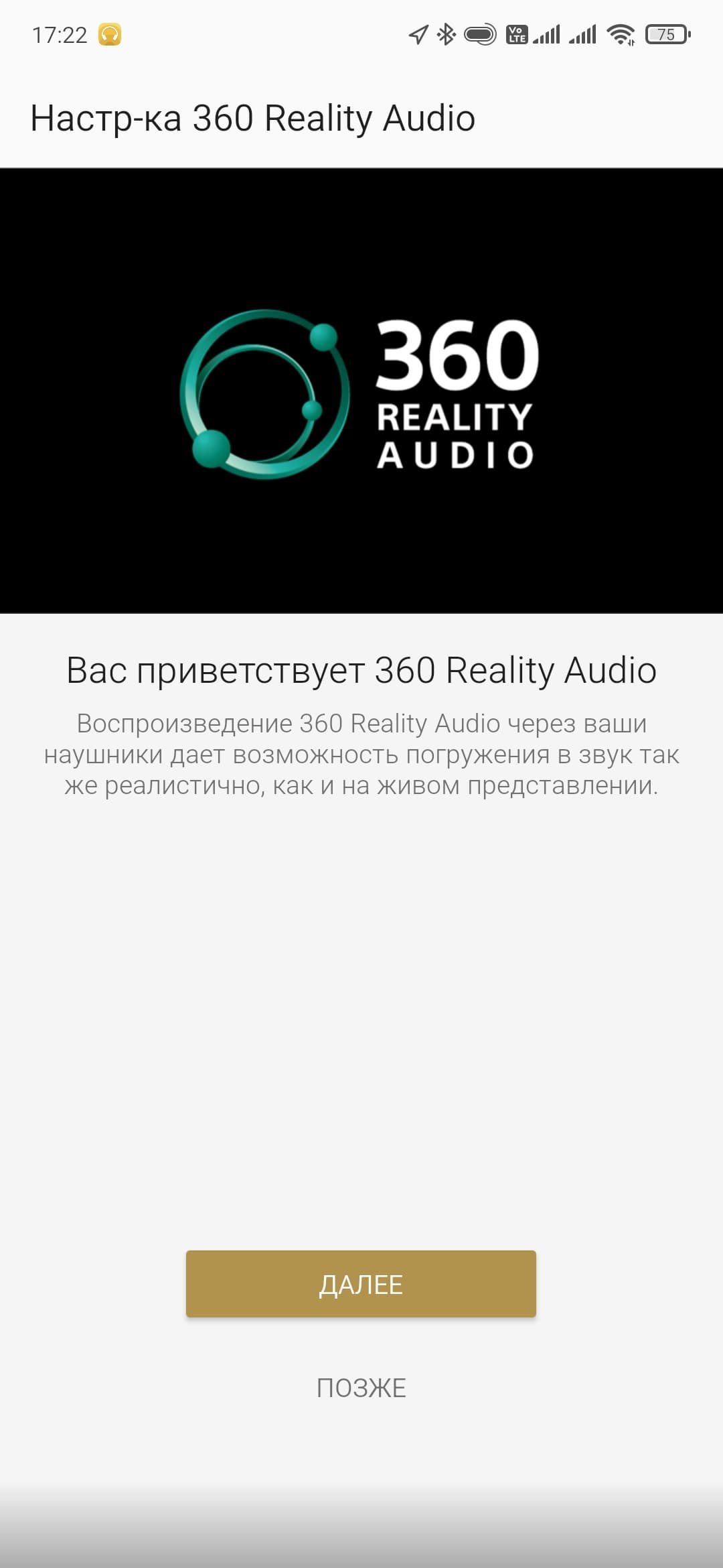 Любой из этапов первоначальной настройки можно пропустить, но лучше уж сделать все и сразу. Следом у нас идут настройки, которые необходимы для воспроизведения звука в формате 360 Reality Audio.