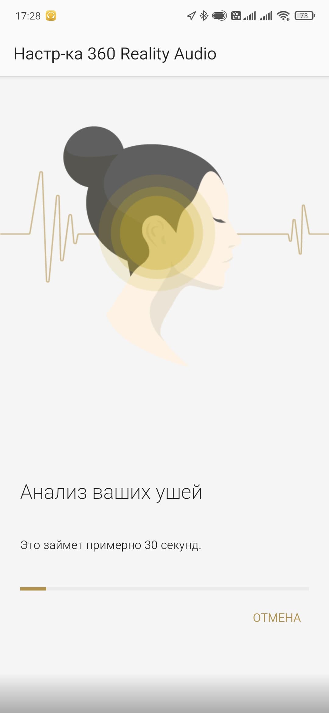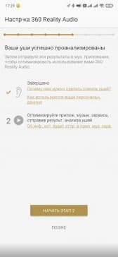 Вместо этого оно рапортует об окончании настройки, после чего предлагает продолжить настройку. Видимо, это такой переход на новый уровень — один пройден, остался еще один. На нем нам предстоит окончательно довести до ума работу 360 Reality Audio. А для этого надо сфотографировать уши — такие дела.
