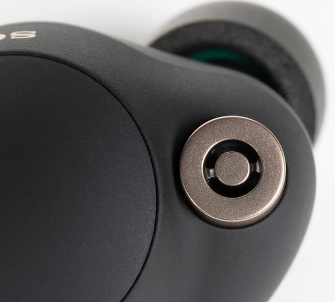 На боковую грань WF-1000XM4 нанесен золотистый логотип, внутренняя часть корпуса обладает рядом изгибов, призванных обеспечить лучшую опору на чашу ушной раковины.