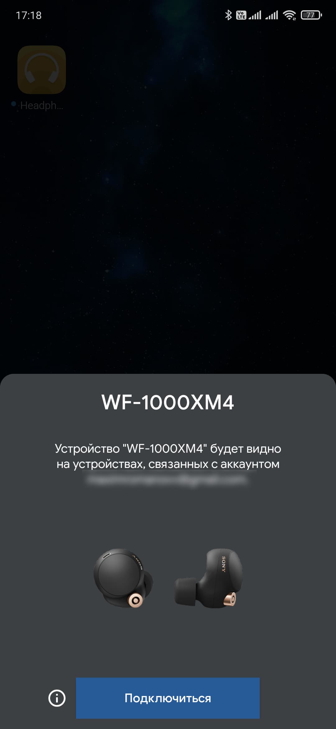 Sony WF-1000XM4 поддерживает Google Fast Pair для сопряжения с Android-устройствами, а также Microsoft Swift Pair для соединения с гаджетами, работающими на Windows 10. Все происходит быстро и легко: достаем наушники, если мы сделали это в первый раз — они сразу активируют режим сопряжения. Принудительно процесс можно запустить одновременным длительным касанием обеих сенсорных зон. Практически сразу появляется уведомление о возможности подключения гарнитуры и привязки ее к аккаунту — соглашаемся, потом еще пару раз соглашаемся. Меньше минуты — и готово.