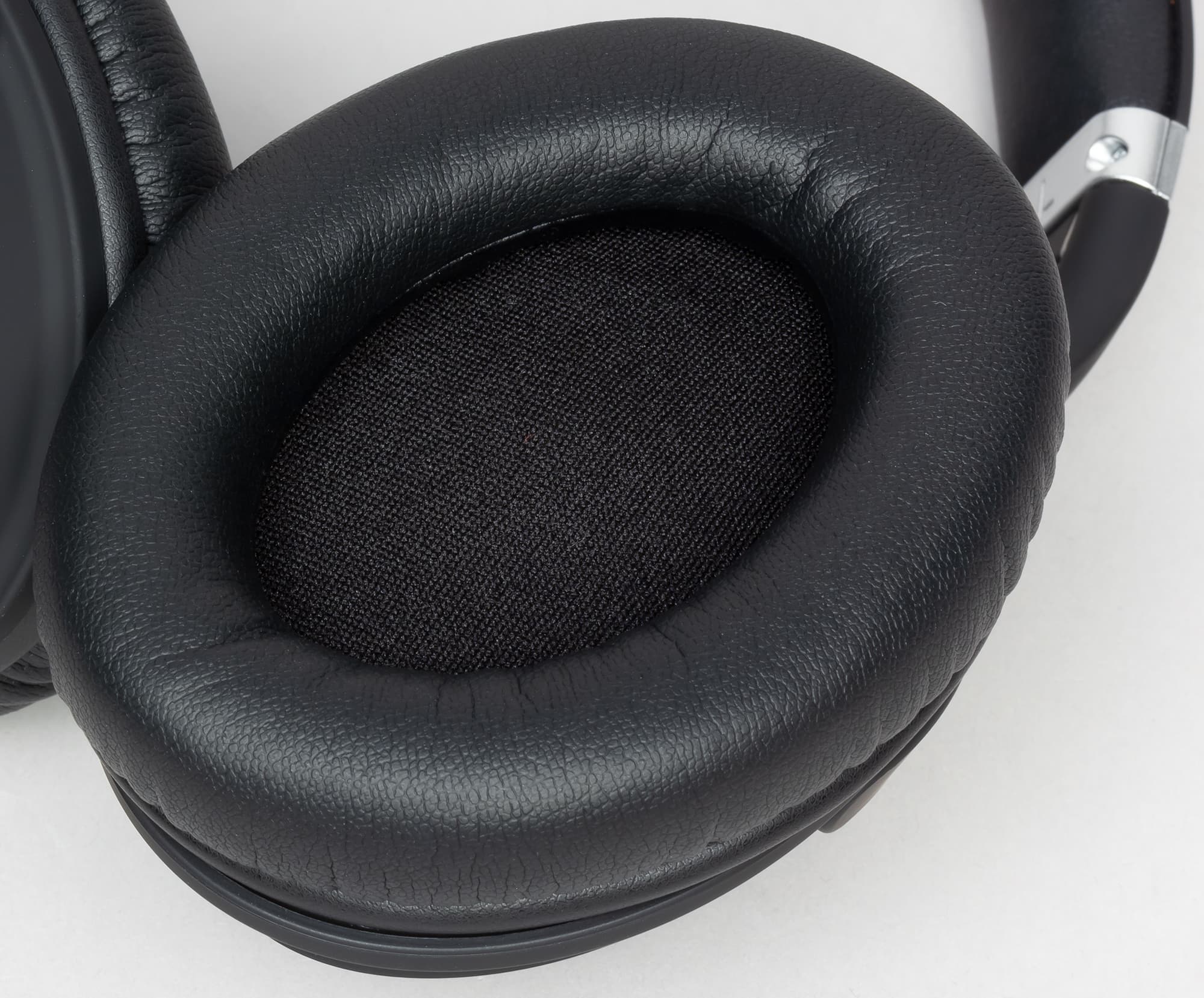 Амбушюры отделаны приятной искусственной кожей, пассивная шумоизоляция находится на хорошем среднем уровне.