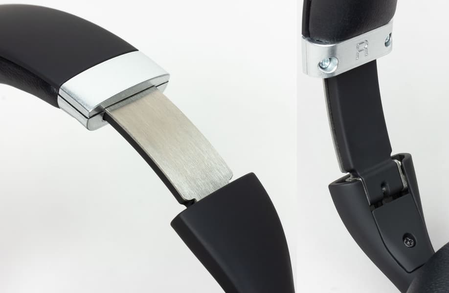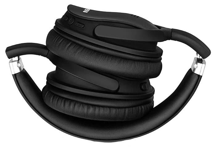 Конструкция складная. В полностью сложенном виде наушники достаточно компактны, появляется возможность положить их даже в небольшую сумку, куда весьма габаритный кейс может не войти. Защелки складных креплений работают с мягким кликом и не требуют приложения ощутимых усилий, что позволяет надеяться на их долгую работу. В целом конструкция наушников выглядит добротно и надежно — ничего не люфтит, видимых зазоров между деталями корпуса тоже нет.