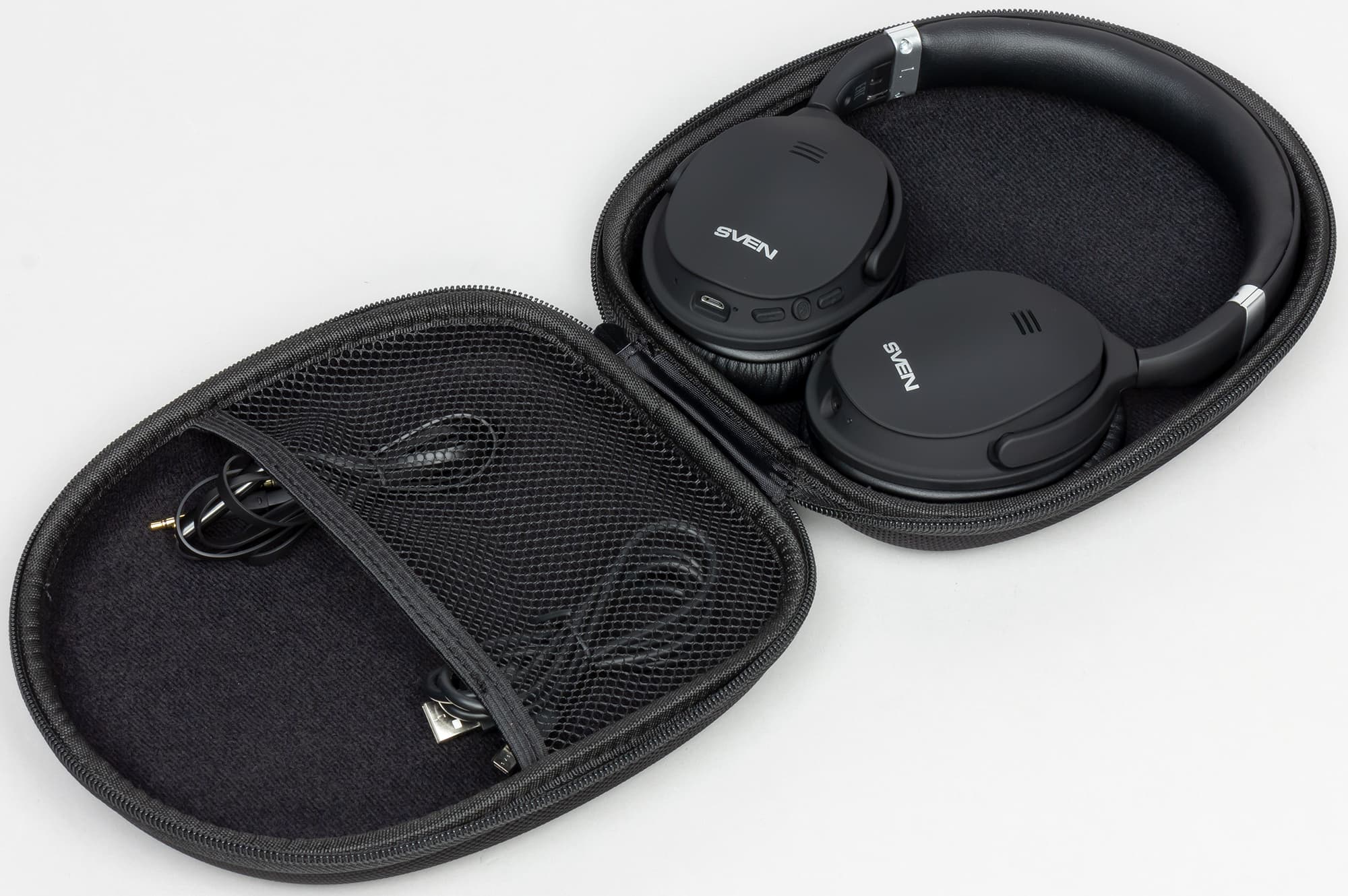 В комплект поставки входят сами наушники, кейс для переноски, два кабеля — для зарядки и проводного подключения к источнику, а также инструкция и гарантийный талон.