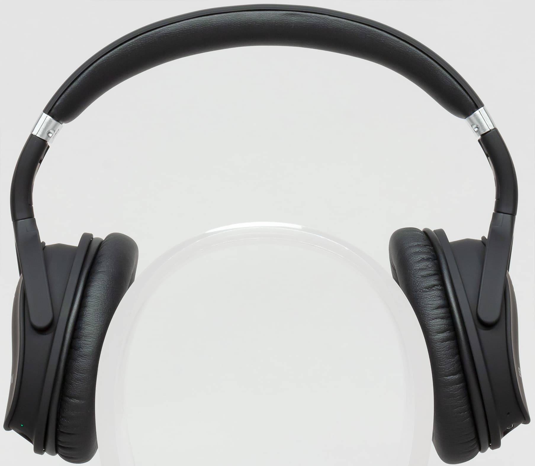 Оформлены наушники строго, но элегантно — в лучших традициях ряда «премиальных» моделей. Практически на все детали нанесено покрытие софт-тач, гарнитуру приятно держать в руках. Следы от прикосновений появляются, несмотря на матовую черную поверхность они довольно хорошо видны. Из декоративных элементов — только логотипы и небольшие вставки с отделкой под металл. Чашки способны поворачиваться на 90 градусов, что позволяет укладывать гарнитуру в кейс, а также весьма удобно носить ее на шее во время пауз в прослушивании.