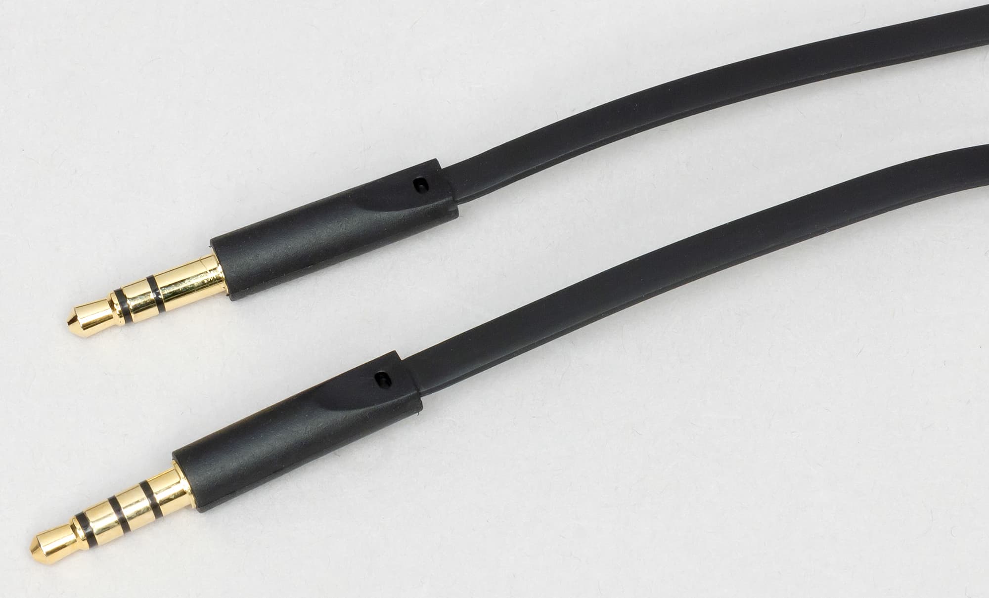 Кабель для соединения с источником звука плоский — не запутывается и выглядит весьма надежным. Коннекторы компактные, при подключении не выступают за края гаджетов.